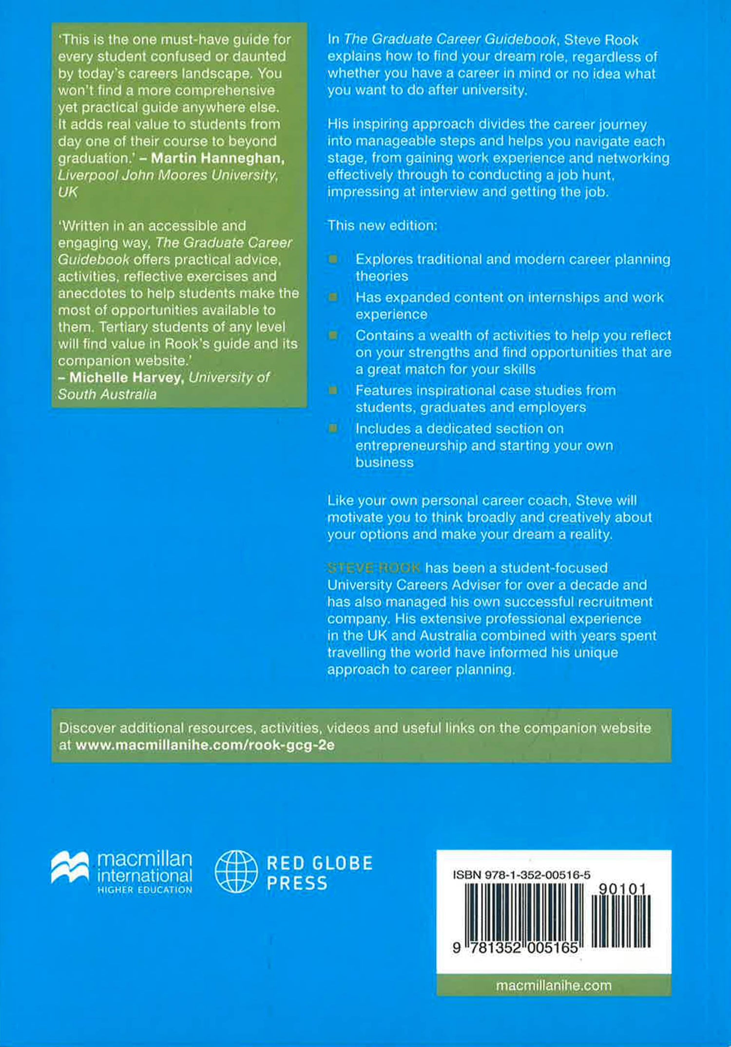 Written by experienced careers advisor Steve Rook, the new edition of this indispensable guide will help readers to develop the skills they need to land their dream job. It breaks the career planning process down into manageable steps, from researching roles and gaining work experience to crafting a stand-out CV and impressing at interview. It also includes practical guidance on networking, entrepreneurship and responding to job offers. Packed with reflective activities, top tips for successful applications and real life case studies, it contains everything students need to develop their skills, get their foot in the door and set themselves up for a fulfilling future. This text will be core reading for students on a wide range of career-related and employability modules. It will also be an invaluable resource for students researching their career options independently. New to this Edition: - Updated content on networking and managing your online presence - More content on work experience and internships, and how they can help students get their foot in the door - Expanded careers theory content
