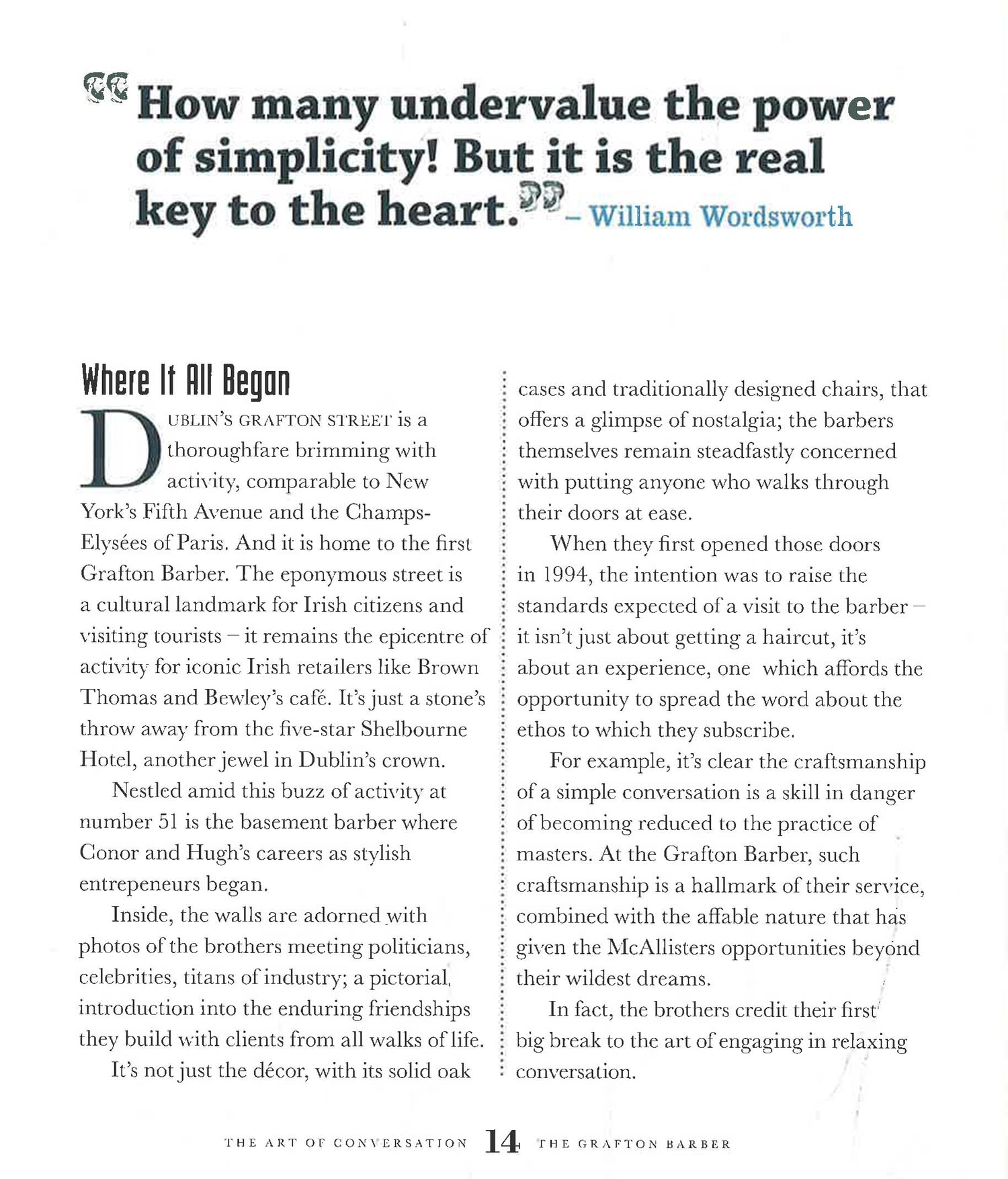 Grafton Barbers can not only be trusted with a cut-throat blade, but also to make proper conversation as they do so. Staff always read the day's newspapers before setting to work with hot towels, scissors and shaving cream ... They can teach you how to:
