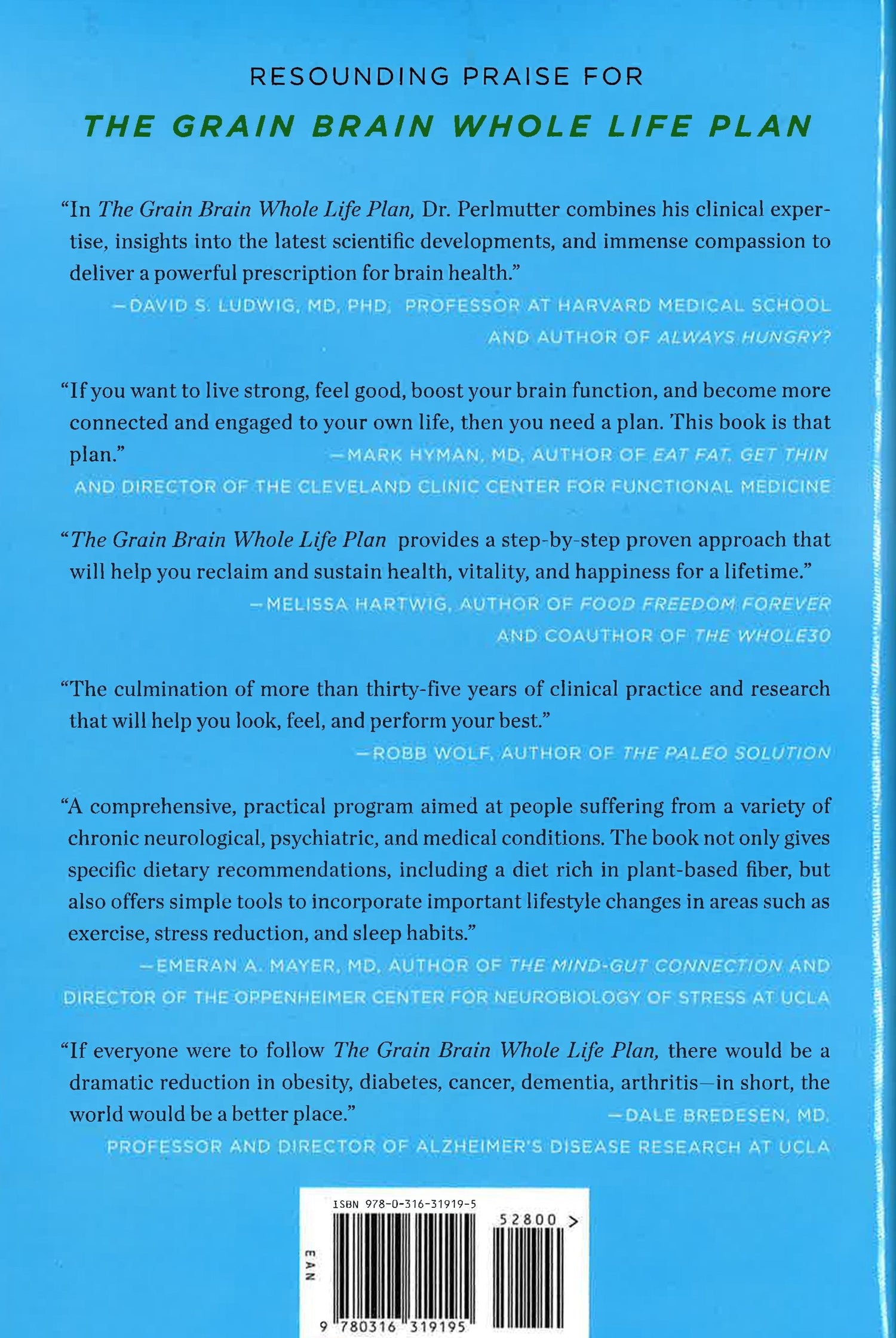The official guide to Dr. David Perlmutter's revolutionary approach to vibrant health as described in his New York Times bestsellers Grain Brain, The Grain Brain Cookbook, and Brain Maker. With more than a million copies sold worldwide, Dr. Perlmutter's books have changed many lives. Now, he's created a practical, comprehensive program that lowers the risk for brain ailments while yielding other benefits, such as weight loss, relief from chronic conditions, and total body rejuvenation. Science-based and highly accessible, THE GRAIN BRAIN WHOLE LIFE PLAN expands upon the core advice from Dr. Perlmutter's previous works, and introduces new information about the advantages of eating more fat, fewer carbs, and nurturing the microbiome. Including original recipes, tips and tricks for common challenges, meal plans, and advice on everything from sleep hygiene to stress management, exercise, supplements, and more, THE GRAIN BRAIN WHOLE LIFE PLAN shows how to live happily and healthily ever after.