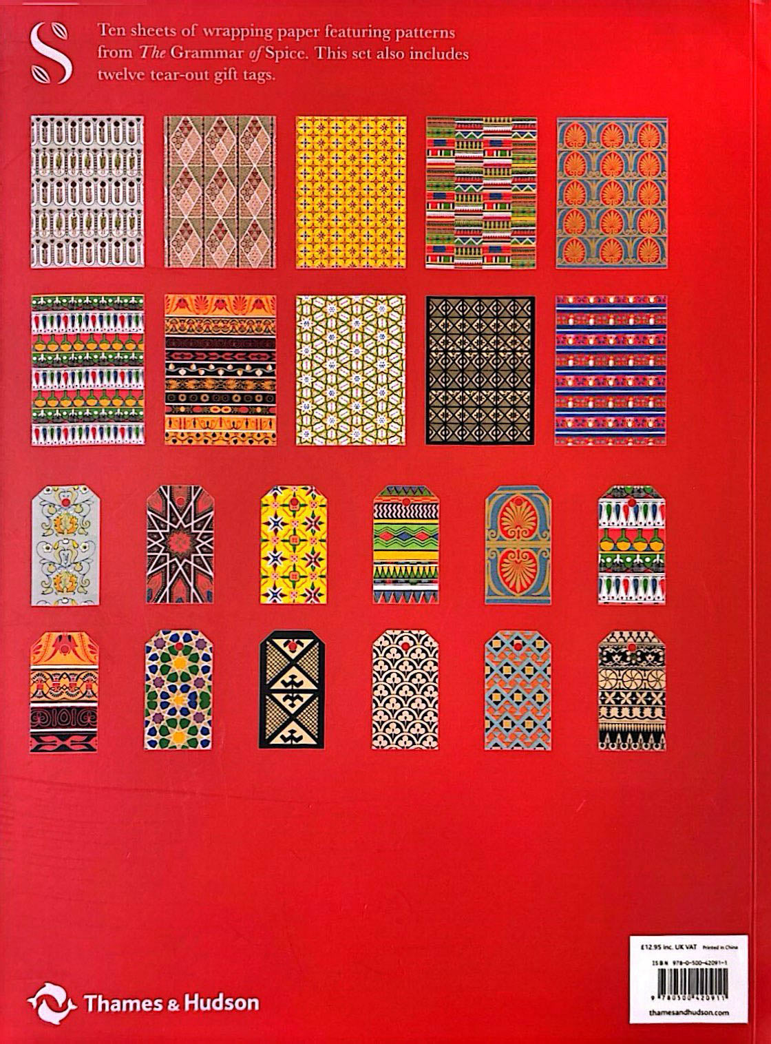 Ten sheets of wrapping paper featuring patterns from The Grammar of Spice. This set also includes twelve tear-out gift tags.
