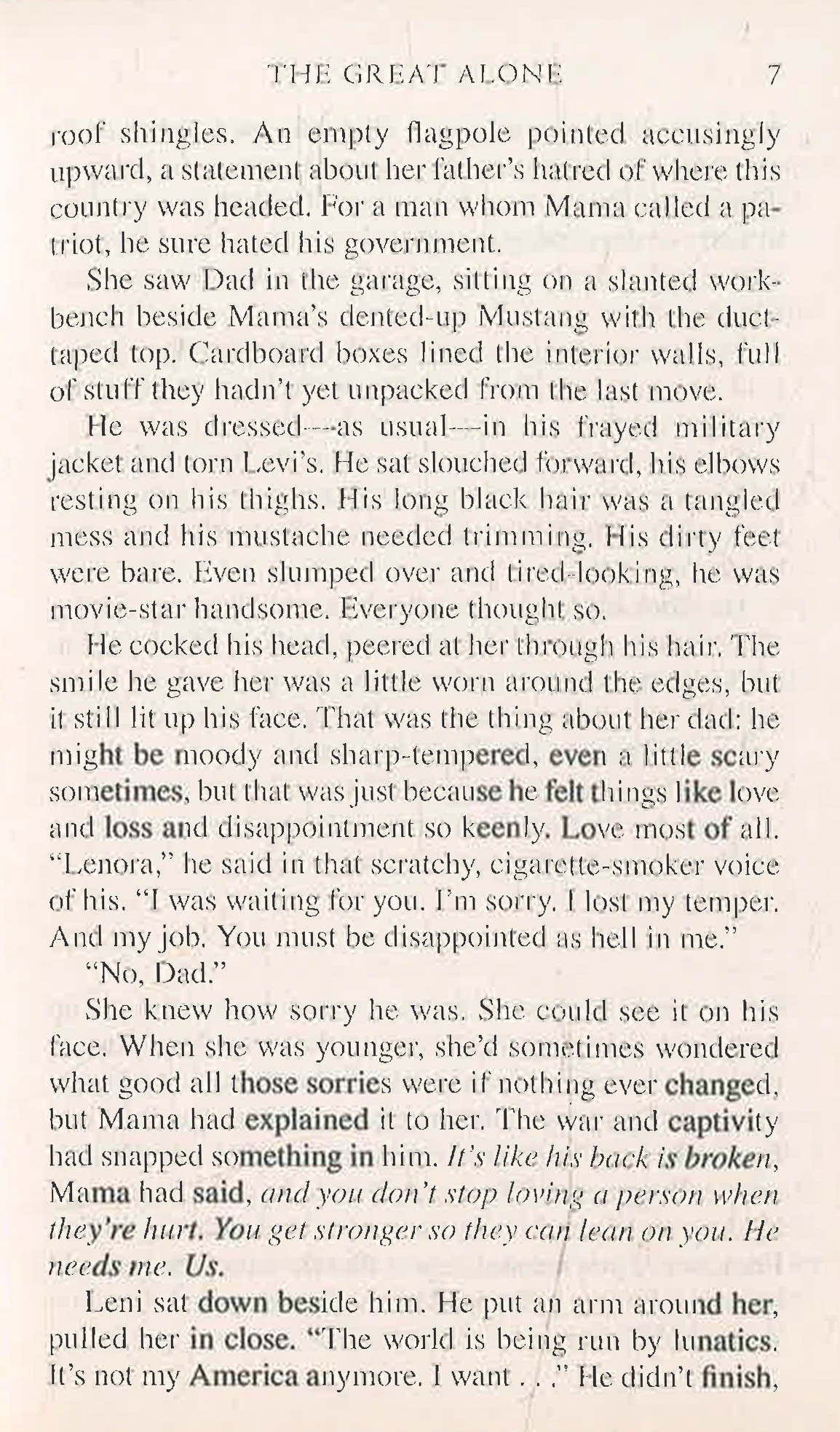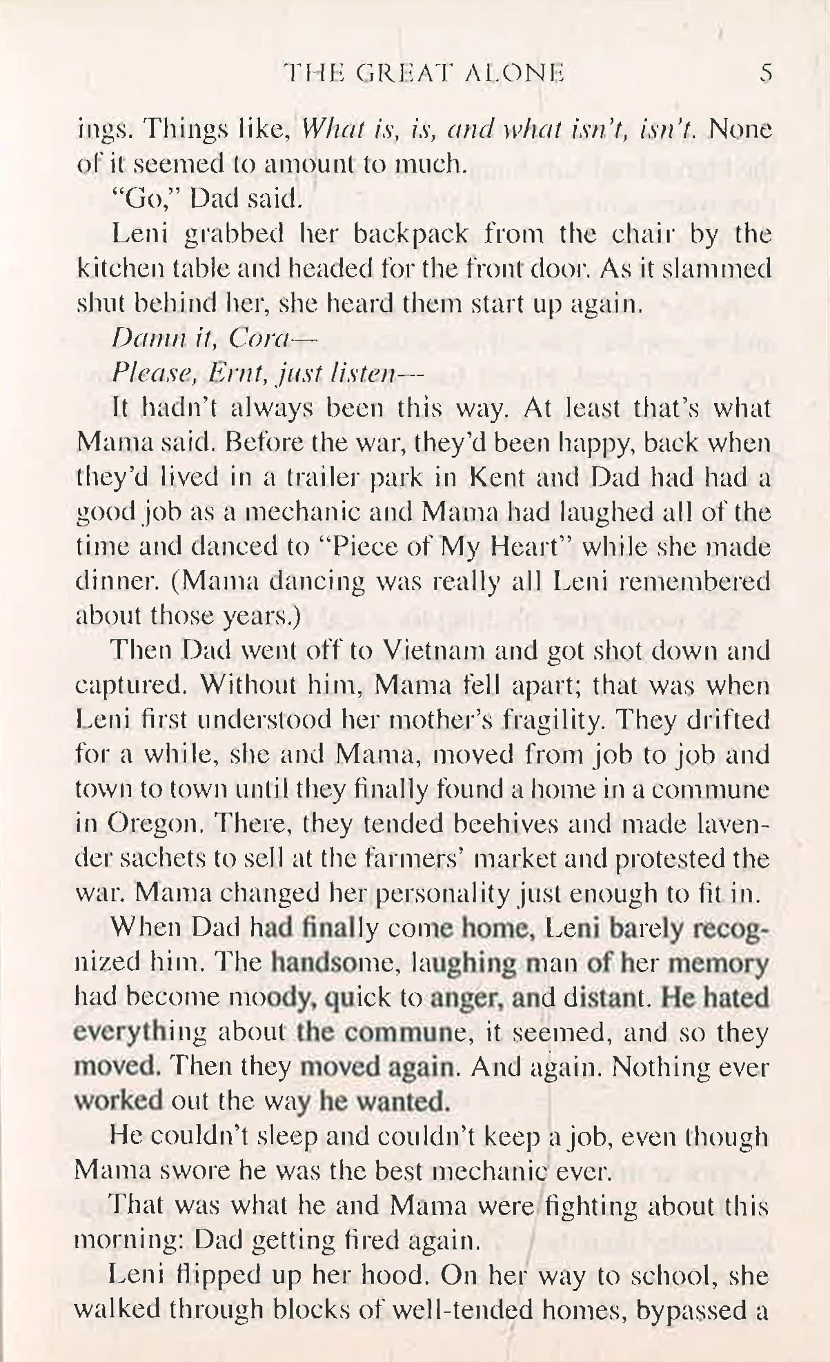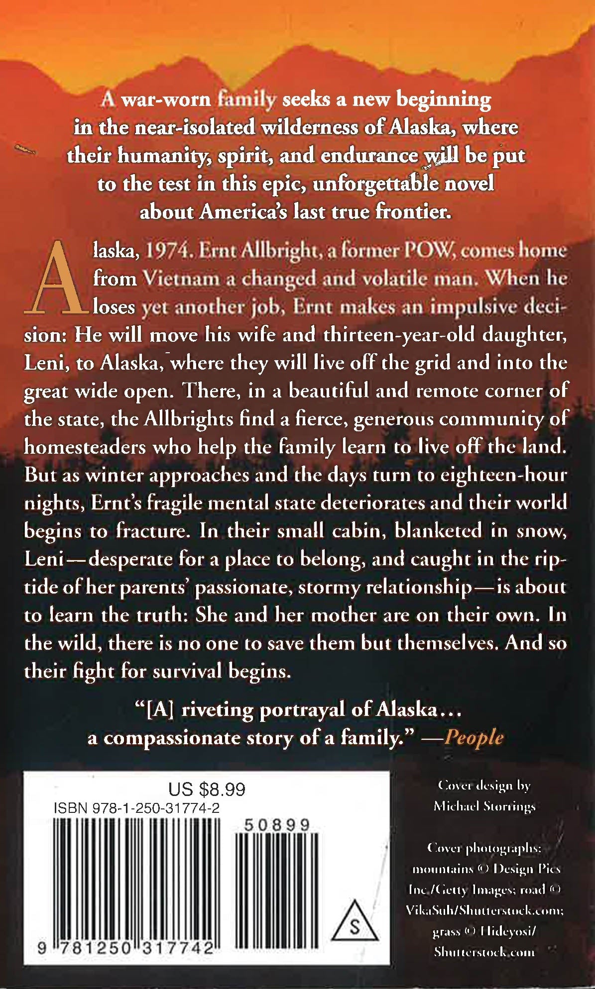 In The Great Alone. the new novel by #1 New York Times bestselling author Kristin Hannah, a desperate family seeks a new beginning in the near-isolated wilderness of Alaska.