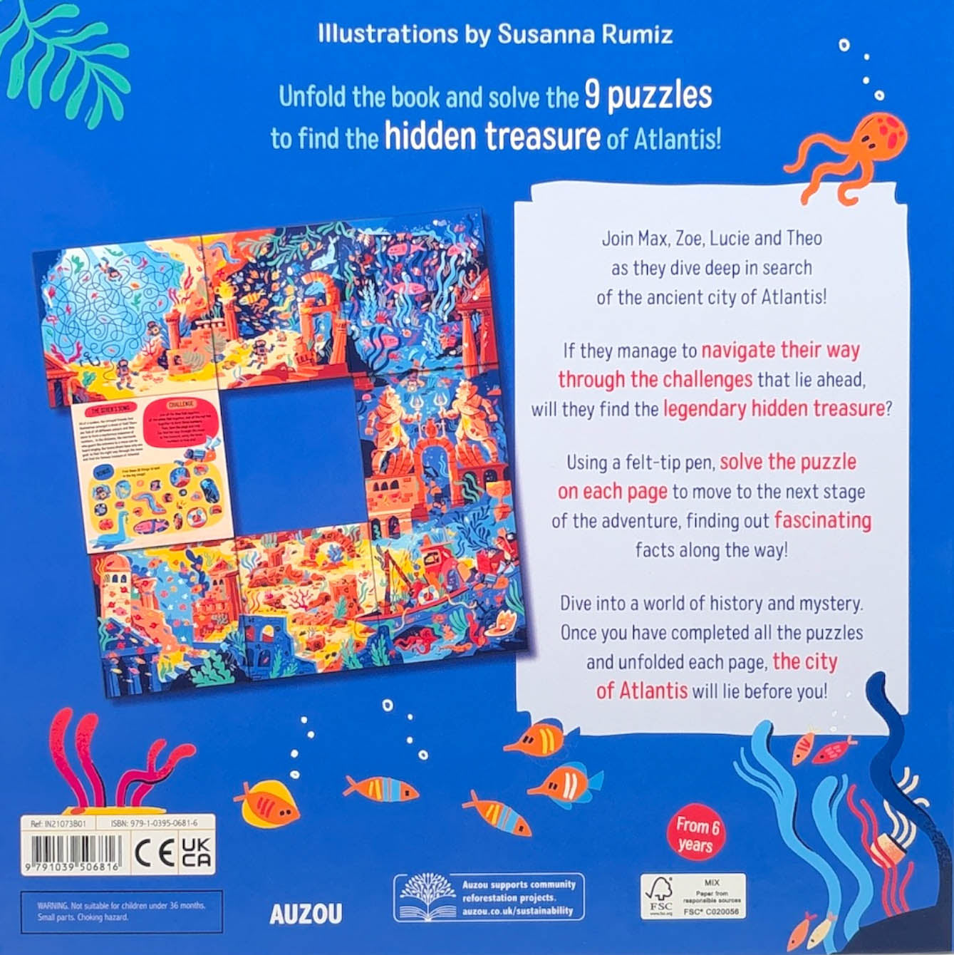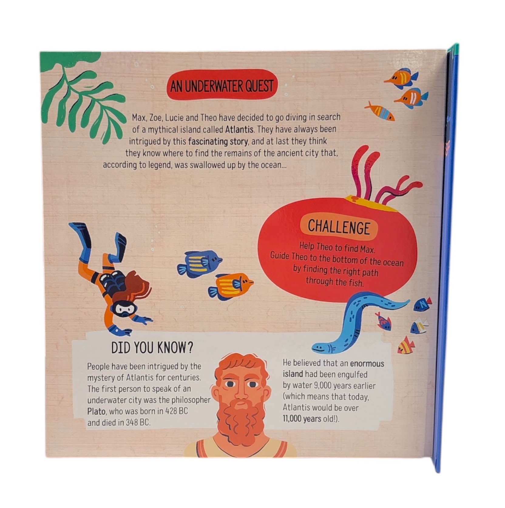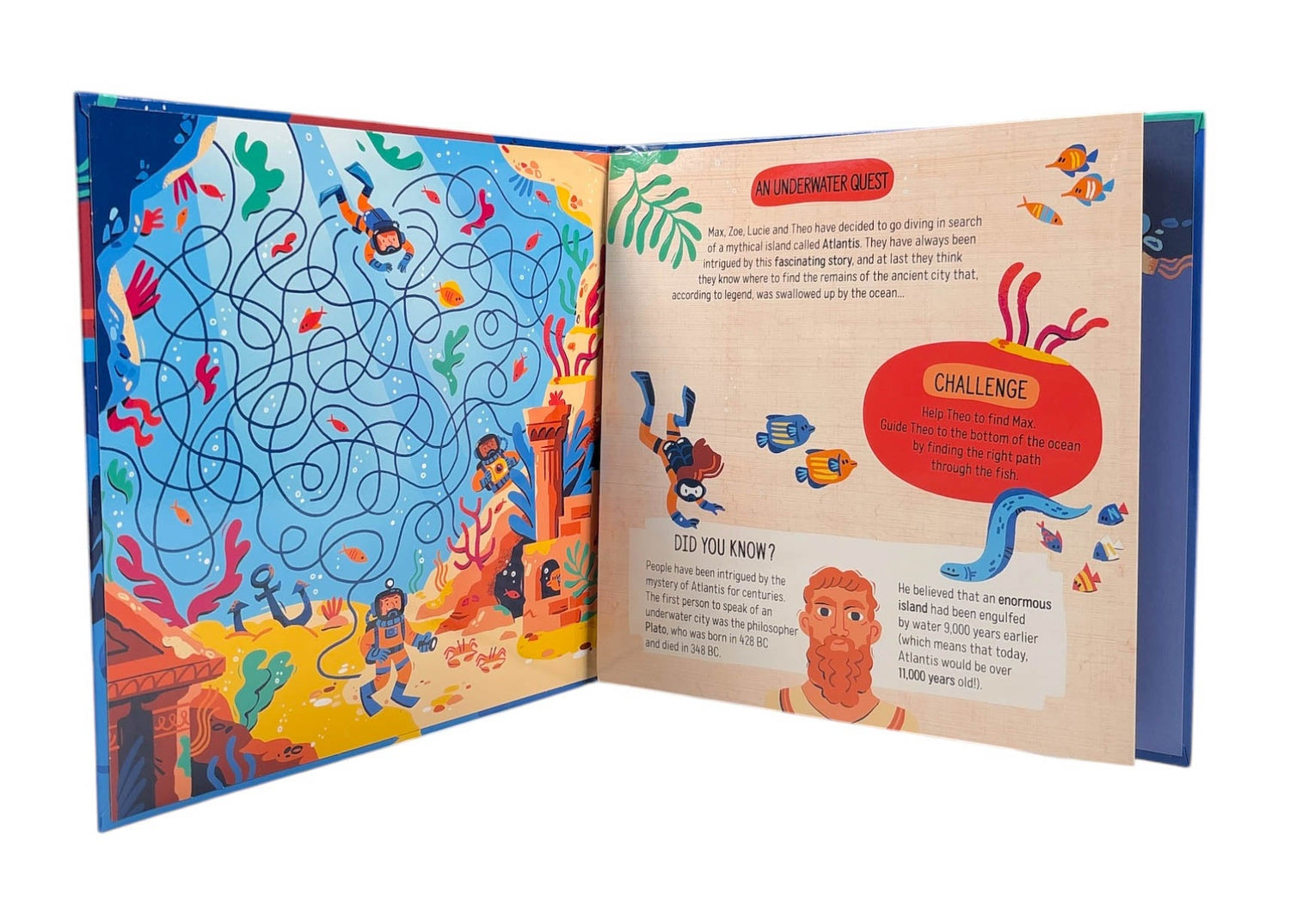 Join 4 divers as they explores the depths of the ocean in search of the missing treasure of Atlantis. On each page, readers must solve a puzzle to progress to the next stage - and each page contains information that curious minds will enjoy reading before continuing with their quest!