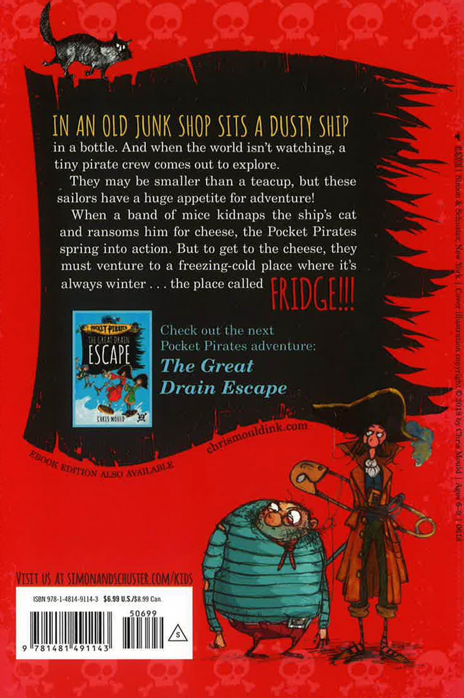 A band of tiny squash-bucklers go on adventures of epic proportions in this start to a brand-new chapter book series about pocket-sized pirates! In the junk shop at the end of the street is a dusty old ship in a bottle. And when the world isn't watching, a tiny pirate crew comes out of the ship to explore. They aren't much bigger than a matchstick, but they have a HUGE appetite for adventure! When a band of mice kidnaps Jones, the ship's cat, and ransoms him for cheese, the Pocket Pirates spring into action. But to get the cheese, they must venture to the freezing cold place where it's always winter...the place called Fridge. Can the Pocket Pirates survive their perilous journey and get their ship's cat back?