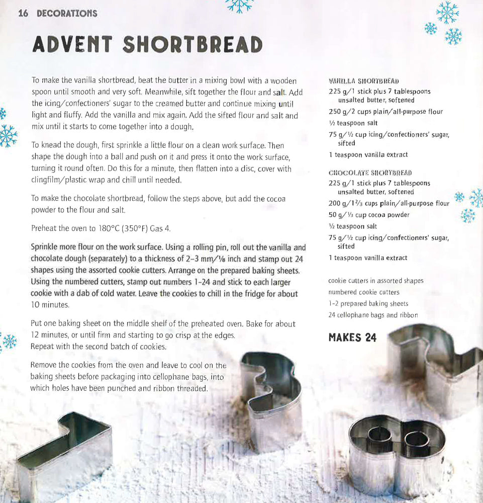 Over 25 achievable recipes for irresistibly festive cookies to bake, decorate and enjoy. Over 25 achievable recipes for irresistibly festive cookies to bake, decorate and enjoy. The festive season is the ideal time to get busy in the kitchen baking delicious treats that raise a smile even before a single bite is taken out of them! Here you'll find delightfully cute recipes for all your favourite festive cookies as well as some fun new ones to try. Ingenious ideas in Decorations include Advent Numbered Cookies, Snowflake Cookies and little iced Christmas Wreaths to hang on your tree. Festive Friends includes recipes for super-cute Snowmen, Penguins and Gingerbread Men that will make little ones squeal with delight. Cookie Gifts is full of foolproof yet impressive recipes just perfect for packaging prettily and giving to friends, teachers or family, including Sparkling Ornament Cookies and a giant Santa Cookie resplendent in his red suit and hat. Of course Christmas just isn't Christmas without traditional melt-in-the-mouth Shortbread and in Traditions you'll find the perfect recipe for this plus plenty of other festive must-haves from around the world, including spiced German Lebkuchen and bite-size Italian Ricciarelli almond cookies. What better way is there to get into the Christmas spirit than to fill your home with the aroma of freshly-baked cookies and invite the children (and adults!) to roll up their sleeves and get decorating?