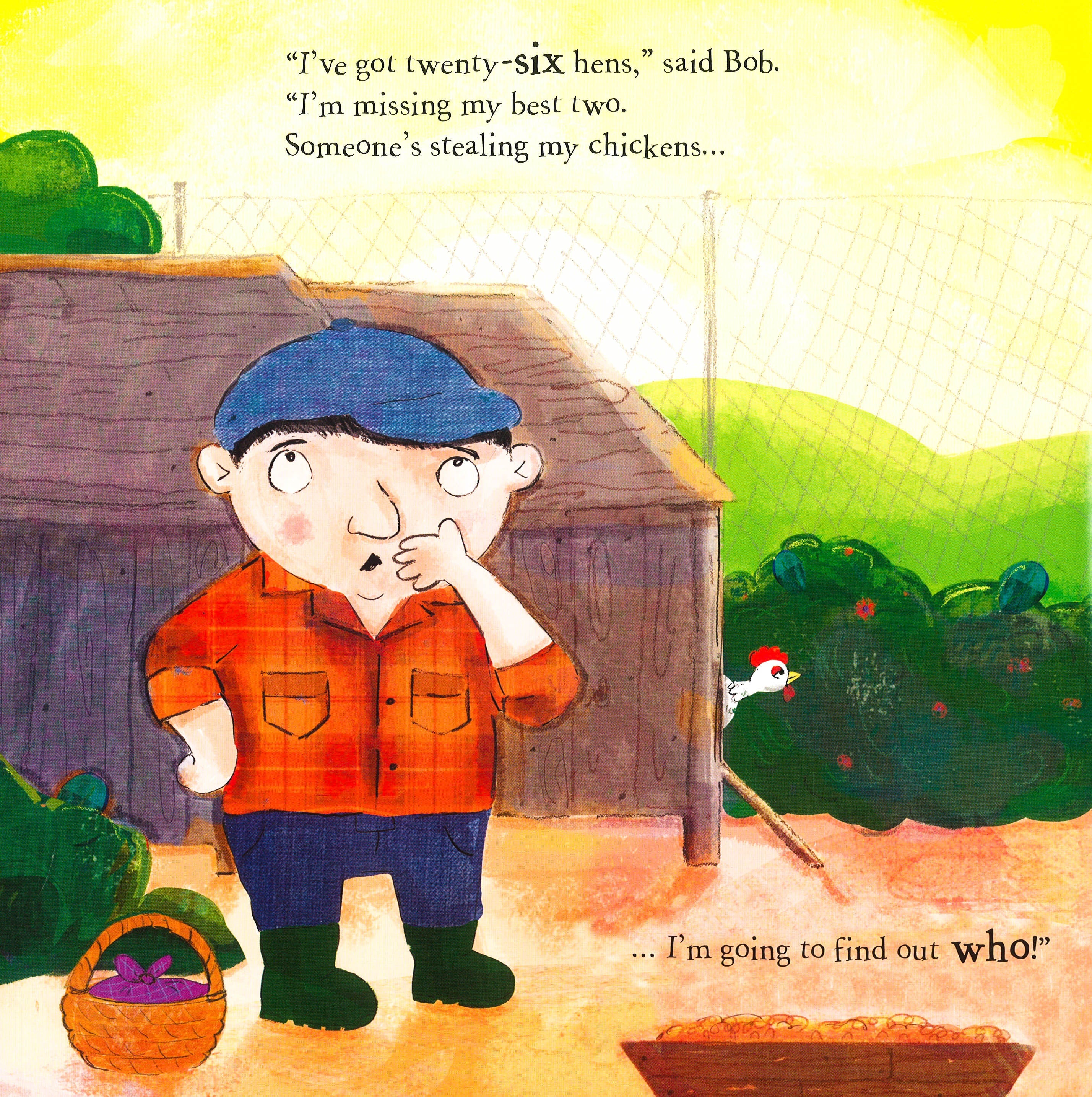 In The Great Chicken Mystery, Fox investigates the mysterious disappearance of chickens on the farm - illustrated by Kirsten Collier