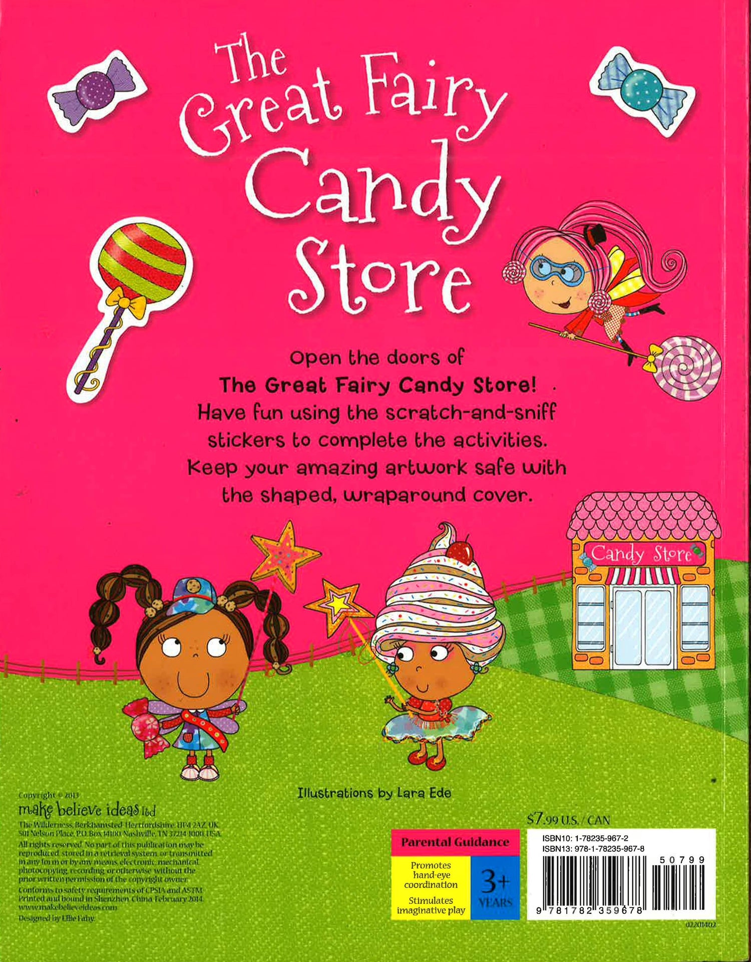 Welcome to the fairy friends' Candy Store! Featuring Camilla the Cupcake Fairy, Daisy the Donut Fairy, Lola the Lollipop Fairy, Izzy the Ice-cream Fairy, Annie the Apple Pie Fairy, Katie the Candy Cane Fairy and Clara the Cookie Fairy. Join the fairies in their famous world of Fairyland for exciting adventures and engrossing activities for young children. With over 1000 stickers, including fantastic scratch-and-sniff stickers, to use in the book or anywhere else, this book is sure to keep children engaged for hours on end!