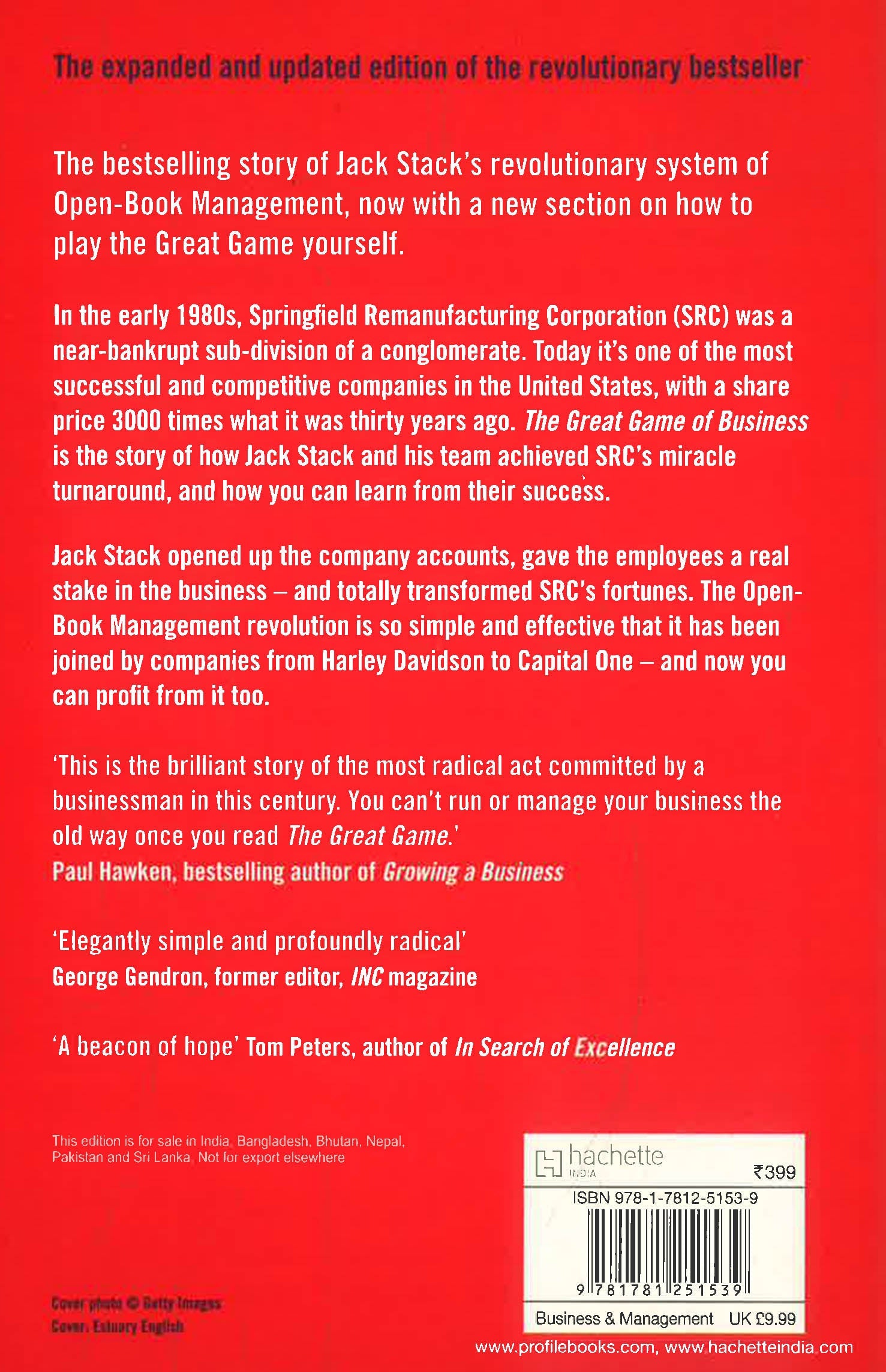 In the early 1980s, Springfield Remanufacturing Corporation (SRC) in Springfield, Missouri, was a near bankrupt division of International Harvester. Today it's one of the most successful and competitive companies in the United States, with a share price 3000 times what it was thirty years ago. This miracle turnaround is all down to one man, Jack Stack, and his revolutionary system of Open-Book Management, in which every employee understands the company's key figures, can act on them and has a real stake in the business. In Stack's own words: 'When employees think, act and feel like owners ... everybody wins.'