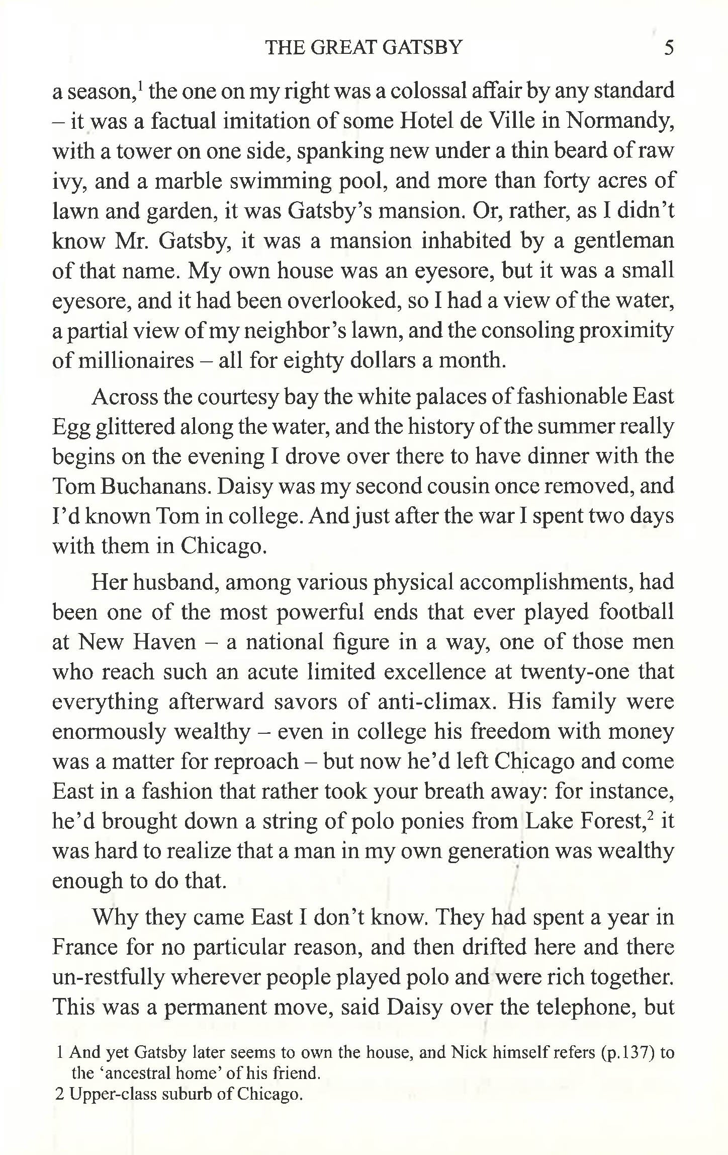The Great Gatsby, one of the greatest American novels by F. Scott Fitzgerald, gives the reader an insight into American Culture. It is a story of an eccentric millionaire, Jay Gatsby, as narrated by Nick Carraway, who resides in a modest home on Long Island (New York), adjacent to the opulent mansion of Gatsby. It is also a tale of love and at the same time of adultery, since Daisy Buchanan, Tom Buchanan’s wife, loves Gatsby and Tom Buchanan has a mistress named Myrtle Wilson. One day, Nick is invited by Gatsby to one of his lavish parties and as the narrative unfolds, Nick learns of the complex relationships among the key characters of the story.