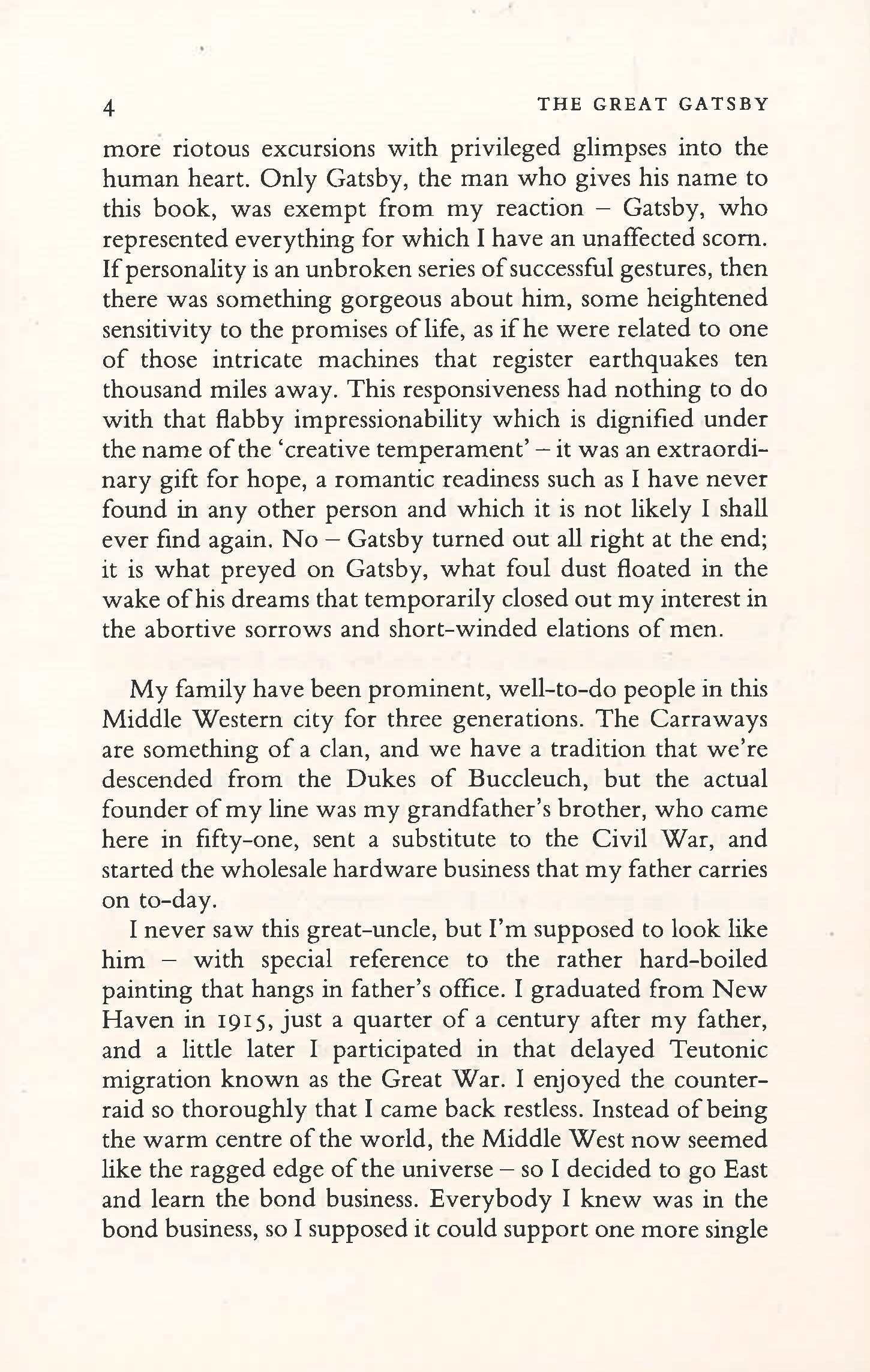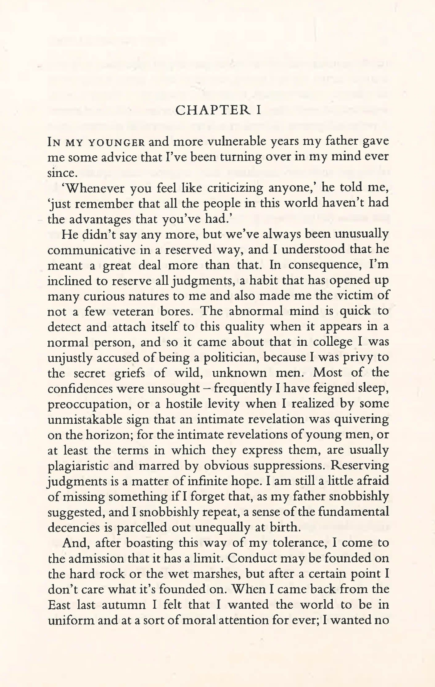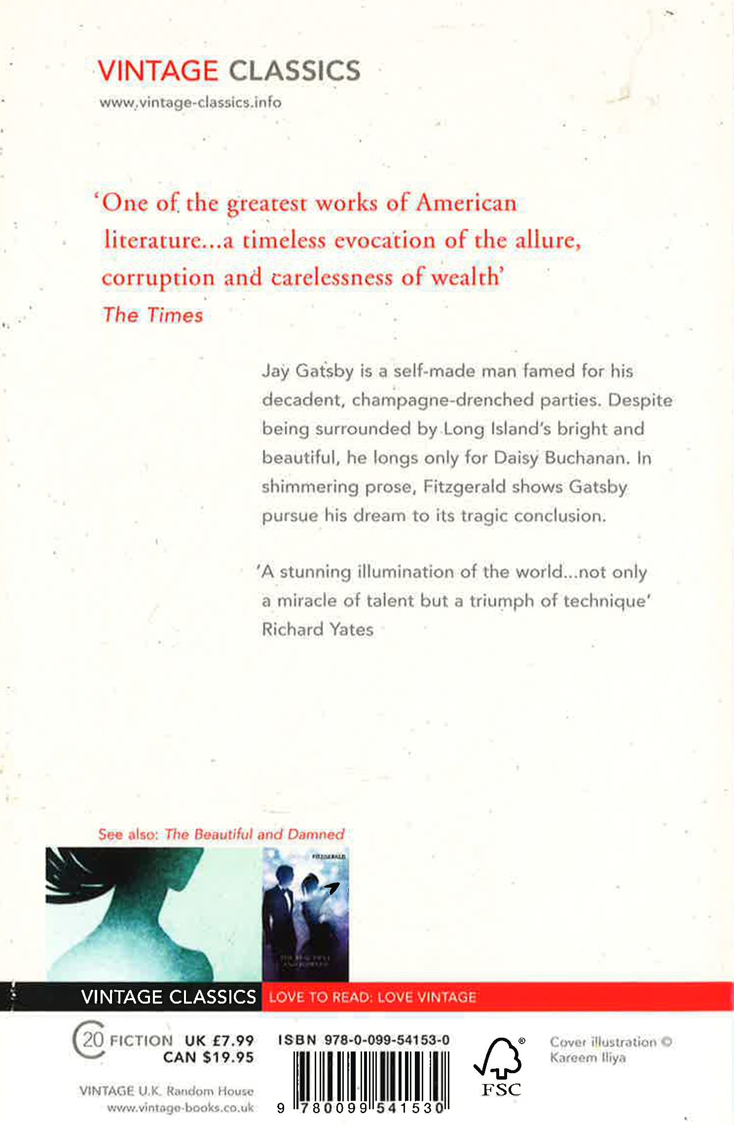 Jay Gatsby is a self-made man, famed for his decadent champagne-drenched parties. Despite being surrounded by Long Island's bright and beautiful, he longs only for Daisy Buchanan. In shimmering prose, Fitzgerald shows Gatsby pursue his dream to its tragic conclusion.