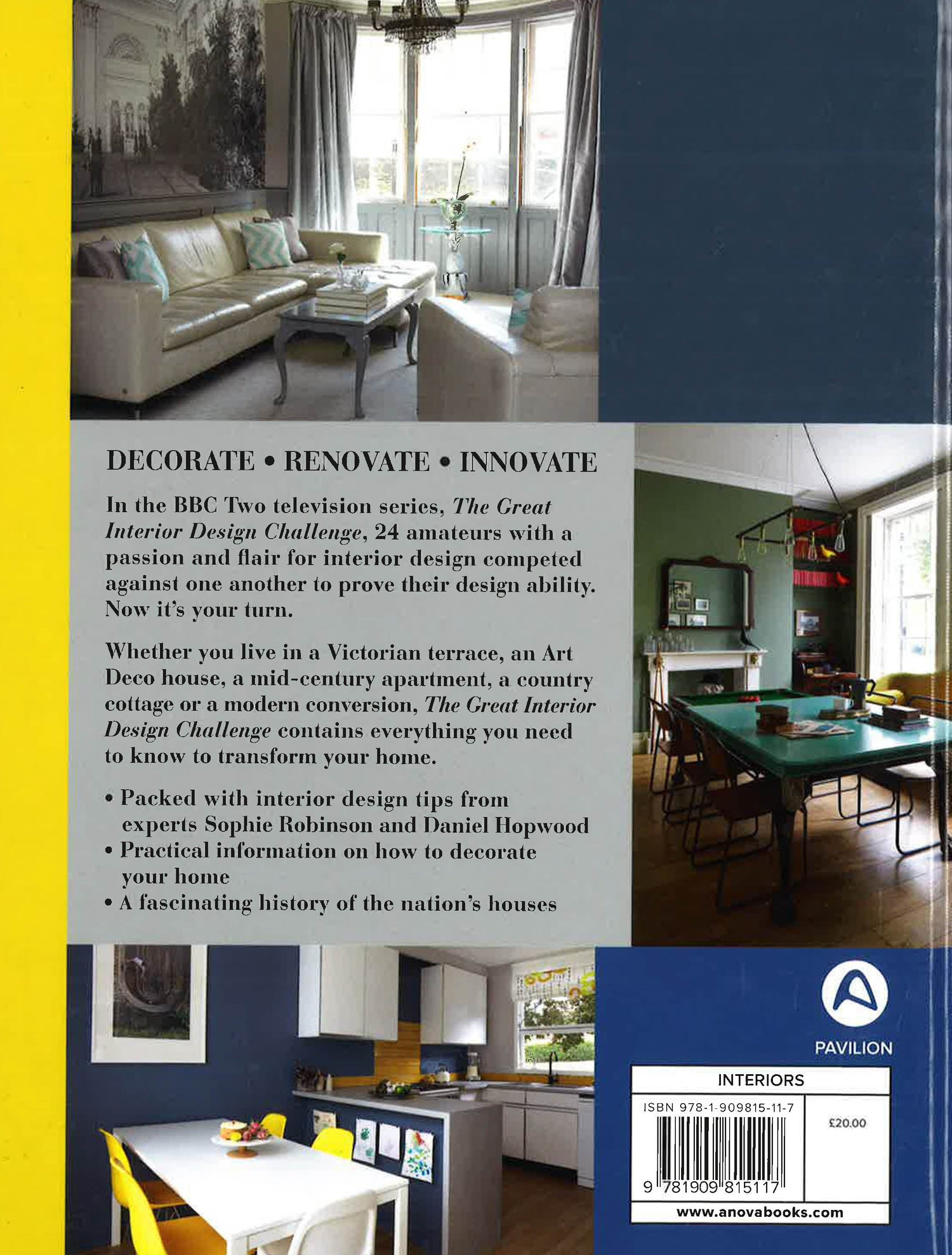 This is the official tie-in to the prime time BBC Two series, The Great Interior Design Challenge . 24 amateur designers compete for the title, watched over by judges interior stylist Sophie Robinson and architect and interior designer Daniel Hopwood, as host Tom Dyckhoff, architecture and interior design critic, offers support. The book contains case studies from the series?covering all room types, breakdowns of budget, and mood boards, as well and expert advice from the judges. The book takes a look at a variety of historical styles across the UK that feature in the series?from Regency to Victorian and Edwardian to Art Deco, right up to modern industrial warehouse conversions?with inspiration for decorating within the style of your home. Including a number of upcycle projects from the TV series, technical know-how, and insider tips from the judges, this book will help the amateur achieve professional results. Tom Dyckhoff is the presenter, is the architecture and design critic for the BBC's The Culture Show, and has written and presented many documentaries for the BBC and Channel 4. Tom has written a weekly column in The Guardian Weekend for more than a decade and was the architecture critic for The Times. Sophie Robinson is one half of the judging panel and has been in the interior design business for over 12 years, with a reputation as one of the industry's top interior stylists, regularly employed by top magazines and television. Daniel Hopwood completes the team as the second judge, and has created homes for millionaire clients, and is a director at the elite British Institute of Interior Design.