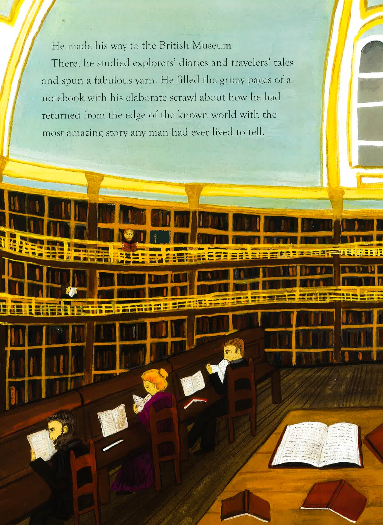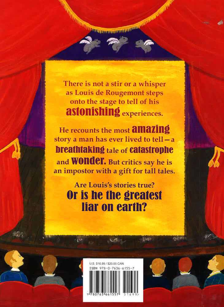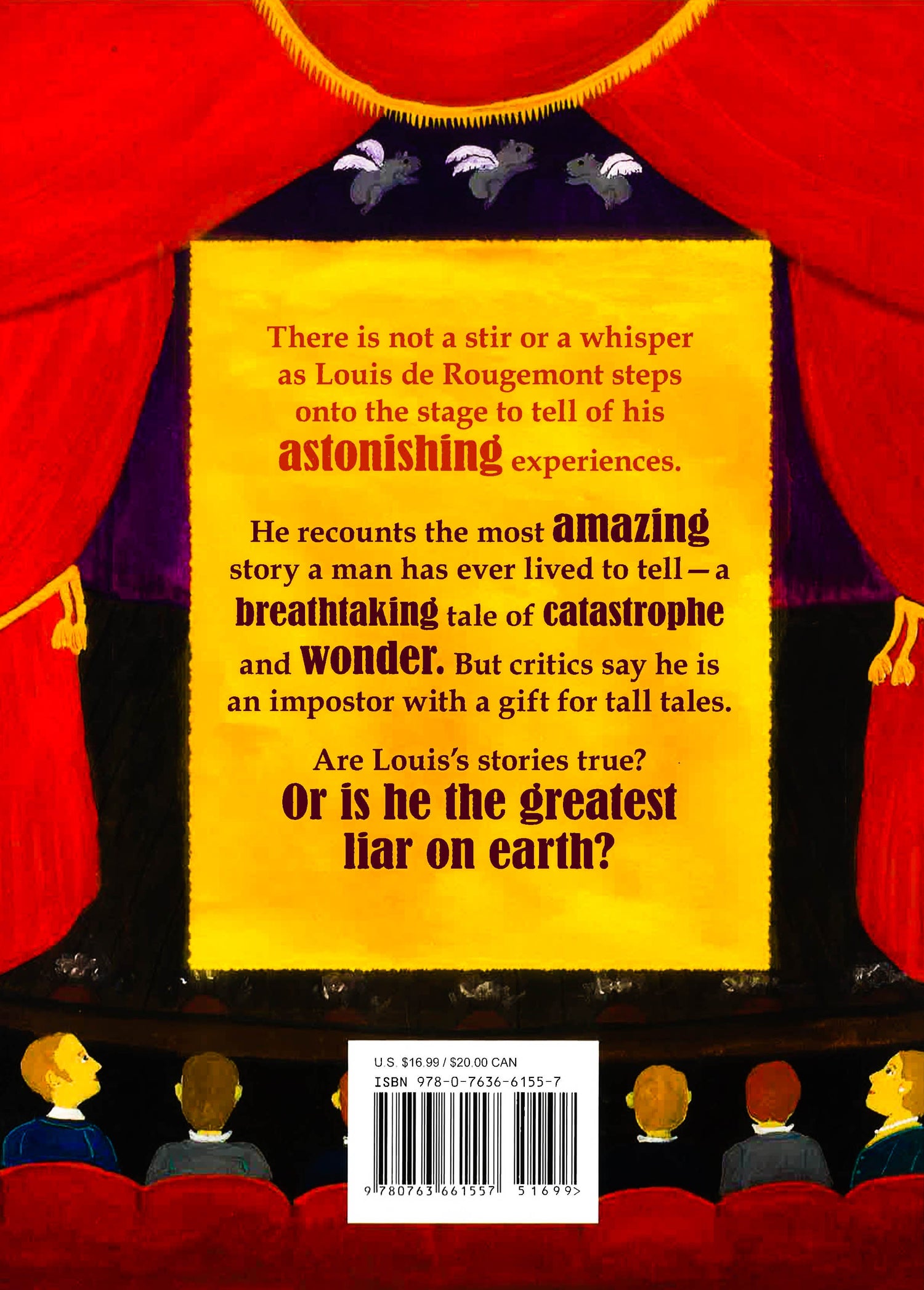 There is not a whisper when Louis de Rougemont steps onto the stage to recount his astonishing experiences on the sea and in lands far away. It is a breathtaking tale of catastrophe and miraculous events. A monster with enormous tentacles! A sea turtle big enough to ride! Fish raining from the sky! Cannibals! But critics say he is an imposter with a gift for spinning yarns. Are Louis’s tales true? Or is he the greatest liar on Earth? Bold, whimsical artwork brings to life the tale of an early-twentieth-century man who held audiences rapt while his critics dubbed him a hoaxer of the highest degree. A fun slice of history sure to inspire a lively discussion of truth, fabrication, and the gray areas in-between.
