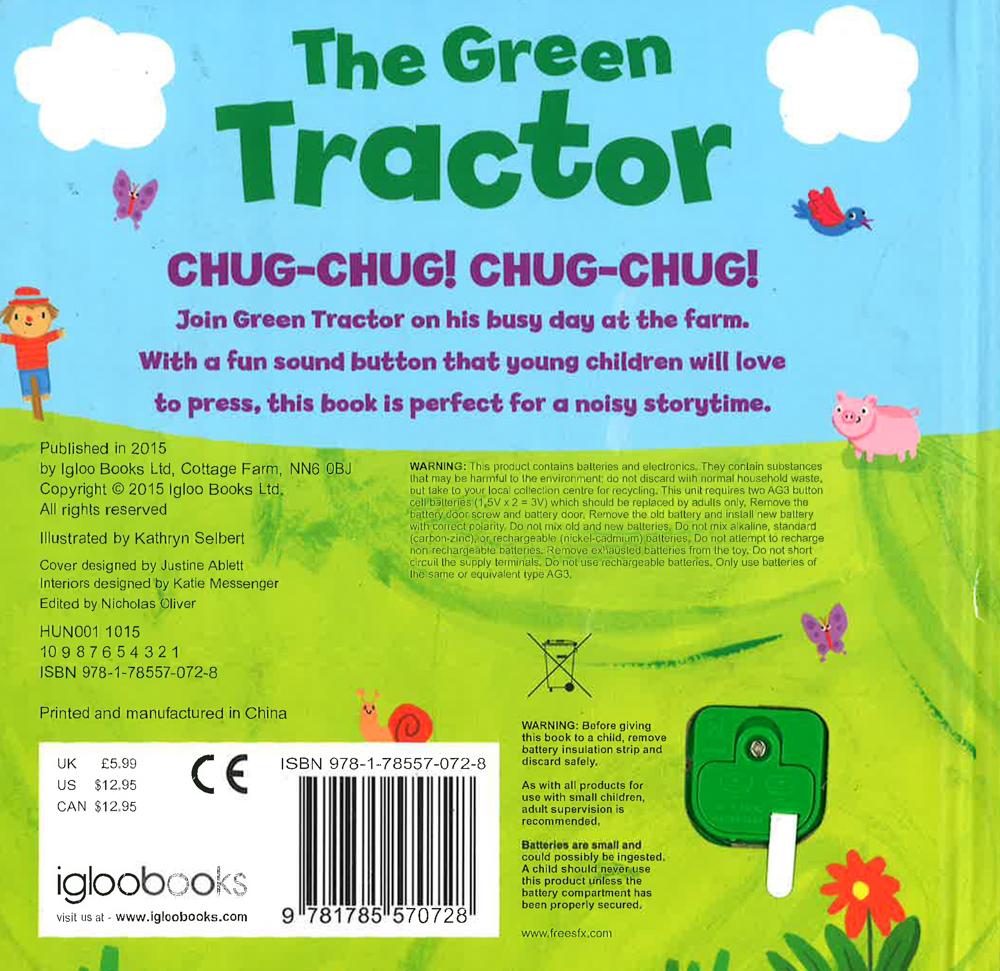 The green tractor, chug-chug! Chug-chug! Join Green Tractor on his busy day at the farm.With a fun sound button that young children will love to press, this book is perfect for a noisy storytime.