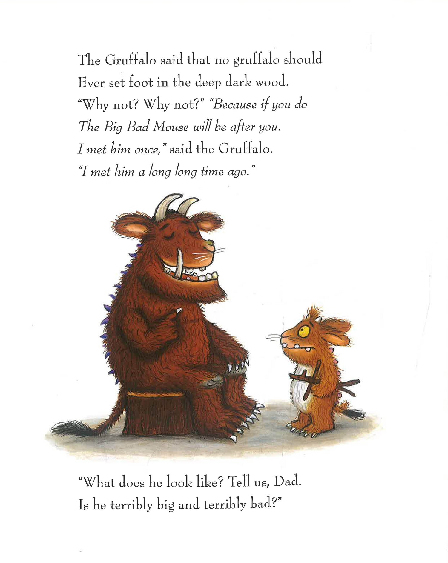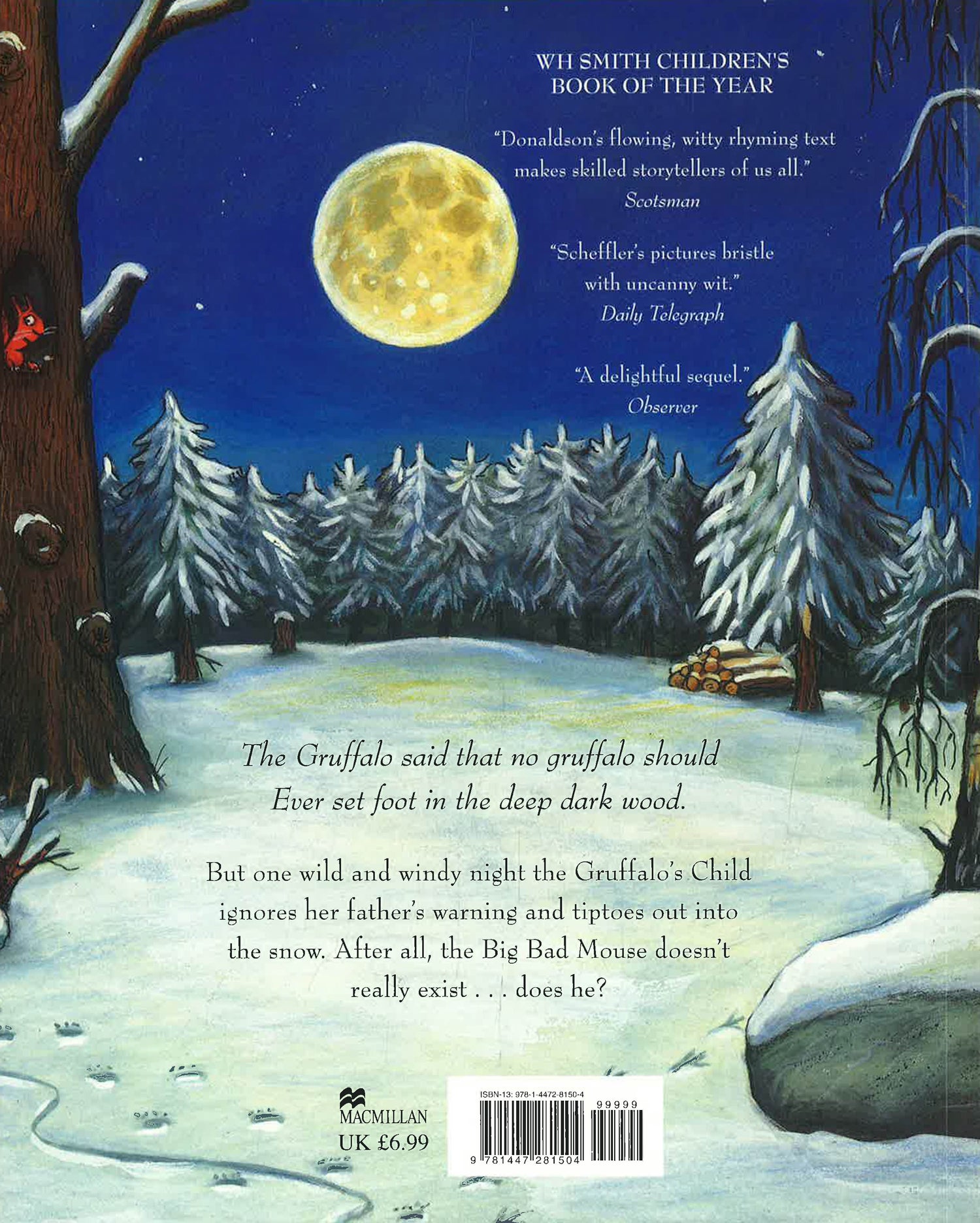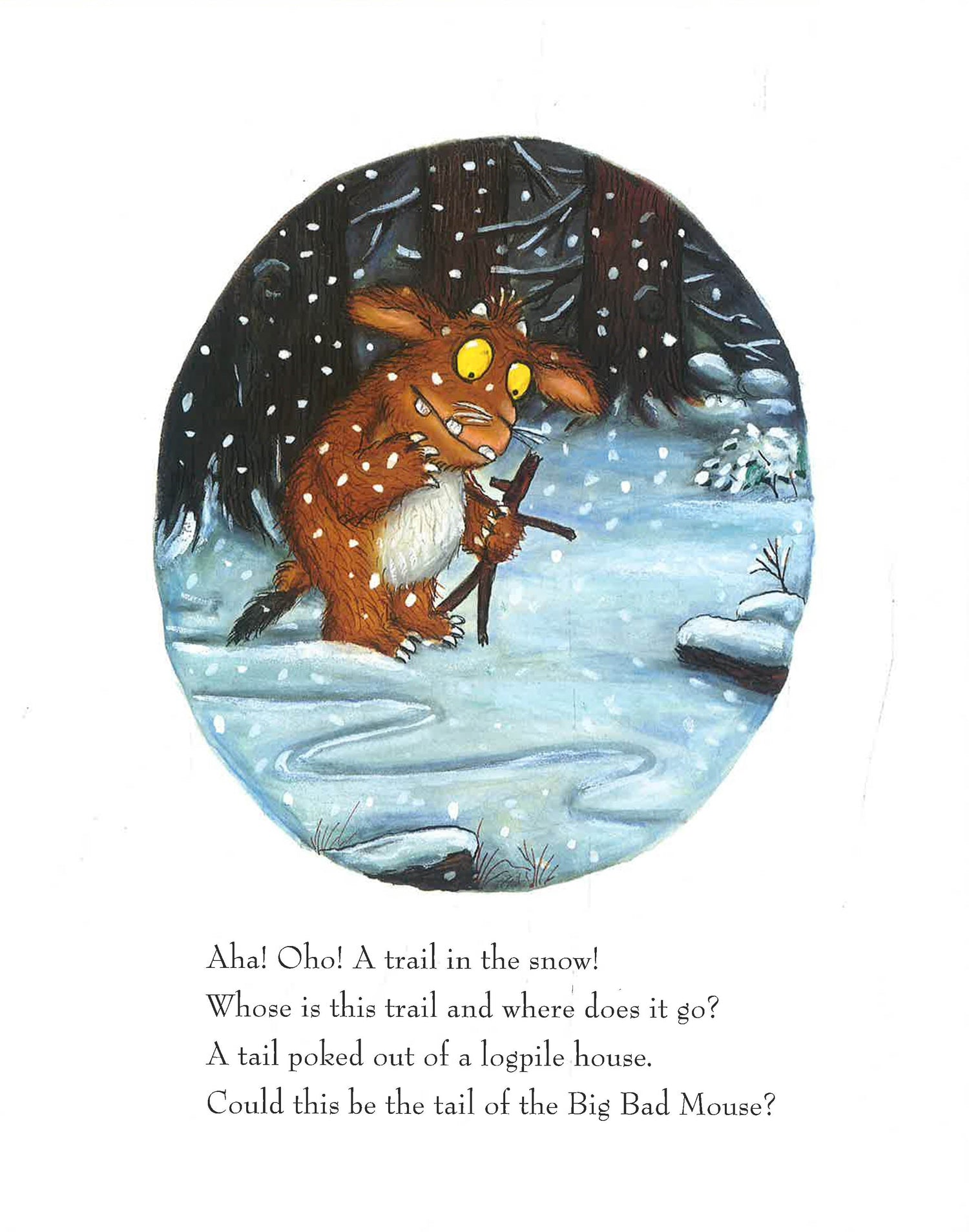 Determined to find the Big Bad Mouse, Gruffalo's child heads off into the wood where he encounters a little mouse with intention to dine on the little creature, but when a large shadow falls upon him, Gruffalo's child begins to think that maybe he underestimated his small rival.
