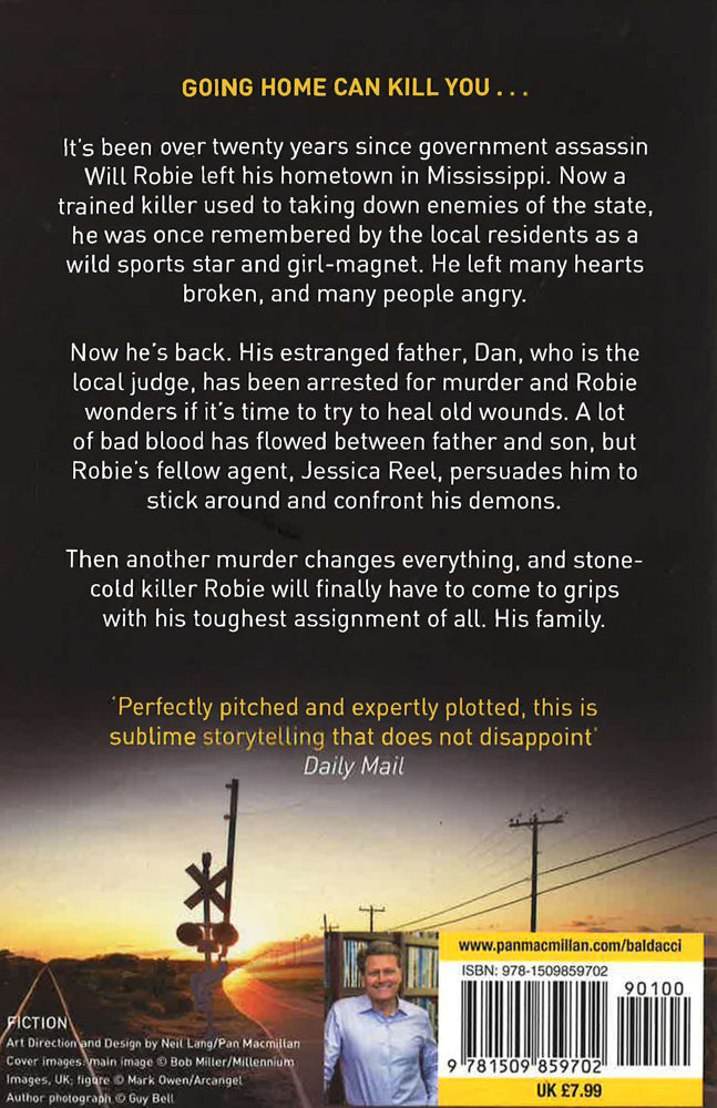 It's been over twenty years since government assassin Will Robie left his hometown in Mississippi. Now a trained killer used to taking down enemies of the state, he was once remembered by the local residents as a wild sports star and girl-magnet. He left a lot of hearts broken, and a lot of people angry.Now he's back. His estranged father, Dan, who is the local judge, has been arrested for murder and Robie wonders if it's time to try to heal old wounds. A lot of bad blood has flowed between father and son, but Robie's fellow agent, Jessica Reel, persuades him to stick around and confront his demons.Then another murder changes everything, and stone-cold killer Robie will finally have to come to grips with his toughest assignment of all. His family.The Guilty is the fourth thriller in the Will Robie series by David Baldacci, following on from The Innocent, The Hit and The Target.
