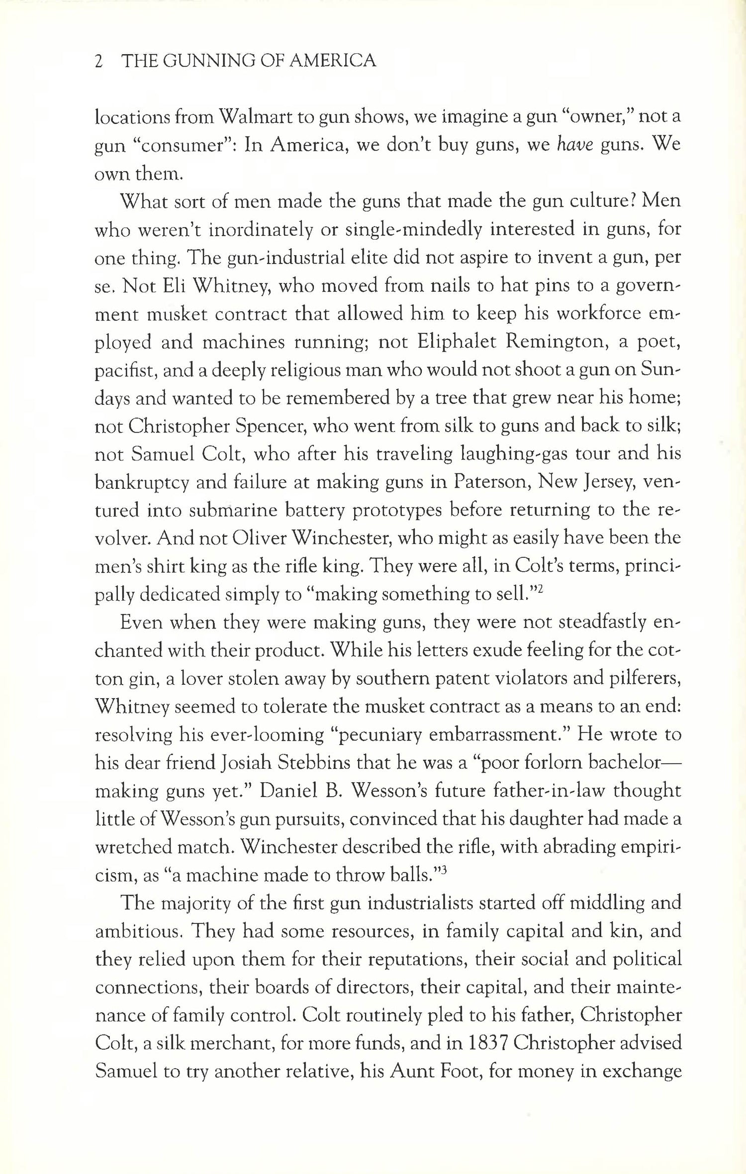 Americans have always loved guns. This special bond was forged during the American Revolution and sanctified by the Second Amendment. It is because of this exceptional relationship that American civilians are more heavily armed than the citizens of any other nation.Or so we're told.In The Gunning of America , historian Pamela Haag overturns this conventional wisdom. American gun culture, she argues, developed not because the gun was exceptional, but precisely because it was not: guns proliferated in America because throughout most of the nation's history, they were perceived as an unexceptional commodity, no different than buttons or typewriters.Focusing on the history of the Winchester Repeating Arms Company, one of the most iconic arms manufacturers in America, Haag challenges many basic assumptions of how and when America became a gun culture. Under the leadership of Oliver Winchester and his heirs, the company used aggressive, sometimes ingenious sales and marketing techniques to create new markets for their product. Guns have never sold themselves" rather, through advertising and innovative distribution campaigns, the gun industry did. Through the meticulous examination of gun industry archives, Haag challenges the myth of a primal bond between Americans and their firearms. Over the course of its 150 year history, the Winchester Repeating Arms Company sold over 8 million guns. But Oliver Winchester,a shirtmaker in his previous career,had no apparent qualms about a life spent arming America. His daughter-in-law Sarah Winchester was a different story. Legend holds that Sarah was haunted by what she considered a vast blood fortune, and became convinced that the ghosts of rifle victims were haunting her. She channeled much of her inheritance, and her conflicted conscience, into a monstrous estate now known as the Winchester Mystery House, where she sought refuge from this ever-expanding army of phantoms.In this provocative and deeply-researched work of narrative history, Haag fundamentally revises the history of arms in America, and in so doing explodes the cliches that have created and sustained our lethal gun culture.