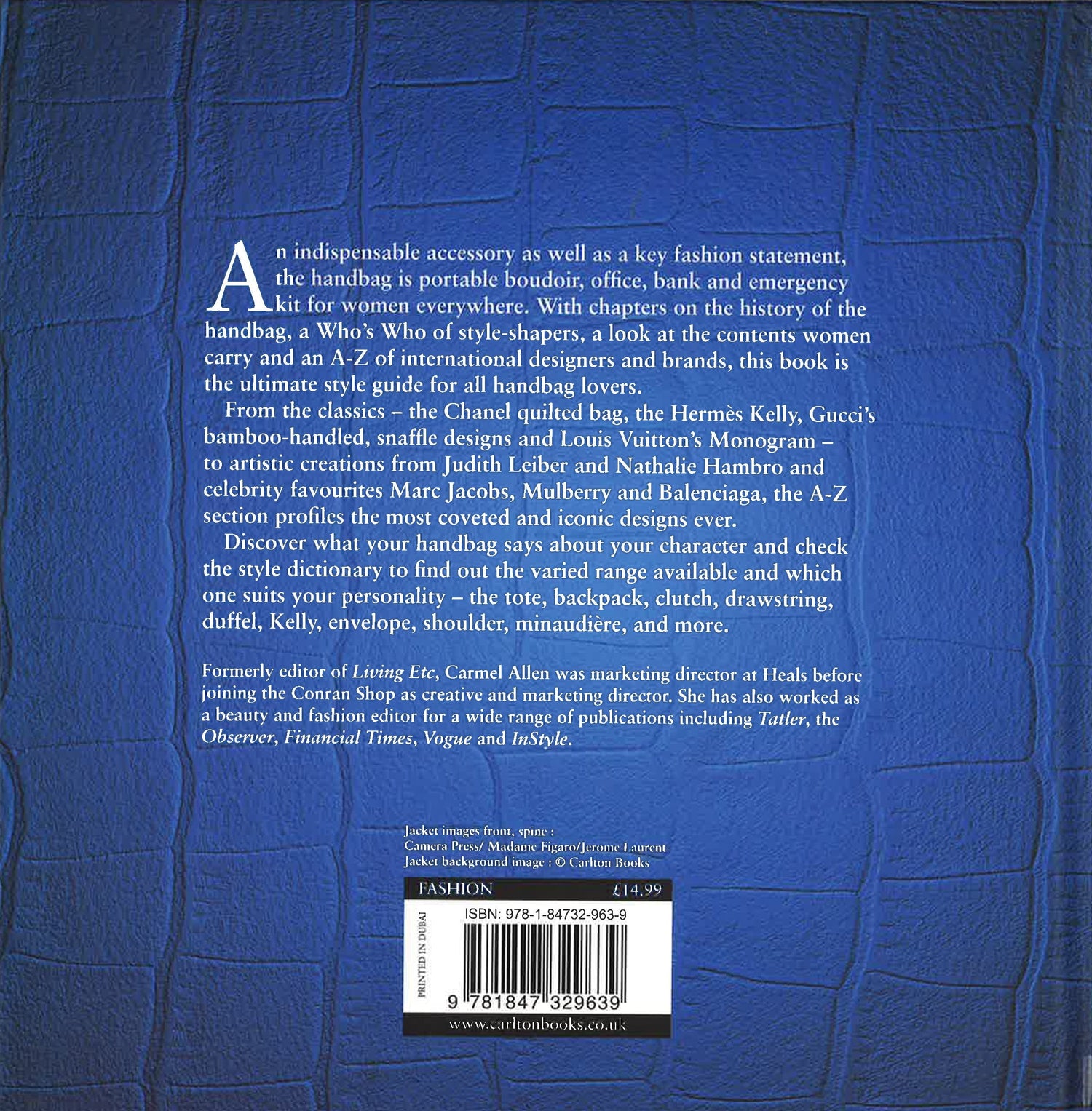An indispensable accessory as well as a key fashion statement, the handbag is portable boudoir, office, bank and emergency kit for women everywhere. With chapters on the history of the handbag, a Who's Who of style-shapers, a look at the contents women carry and an A-Z of international designers and brands, this book is the ultimate style guide for all handbag lovers. This newly updated book now includes include the 'it' bags of the twenty-first century, those on the arms of every celebrity about town and on every fashionista's wish list such as the Fendi B, Marc Jacob's Stam and Dior's Gaucho. From the classics - the Chanel quilted bag, the Hermes' Kelly, Gucci's bamboo-handled, snaffle designs and Louis Vuitton's Monogram - to artistic creations from Judith Leiber, Jamin Puech and Alexander McQueen, and celebrity favourites Marc Jacobs, Alexander Wang, Anya Hidmarch, Marc Jacobs and Balenciaga, the A-Z section profiles the most coveted and iconic designs ever. Discover, too, what your handbag says about your character and check the style dictionary to find out the varied range available and which one suits your personality - the tote, backpack, clutch, drawstring, duffel, Kelly, envelope, shoulder, minaudiere, and more. With useful hints and tips on how to accessorize and over 200 colour photos, "The Handbag" is a truly indispensable, inspirational book for the many women for whom the bag is the accessory.