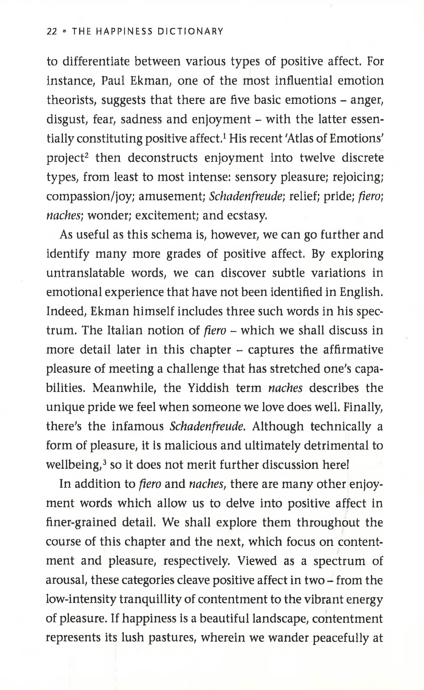 Have you ever had a feeling that you couldn't quite describe, because no English word exists for it? Indeed, without such a word, it's difficult to remember or understand the feeling, and to talk about it with other people. This applies to all aspects of life, but most of all to that most sought-after of feelings, happiness, where our ability to both experience and understand it is limited by the words at our disposal. However, all is not lost. Even if English has not created a word for a specific feeling, another language probably has. These are known as 'untranslatable' words, because they lack an exact equivalent in another language. By discovering and learning these words, the boundaries of our world expand accordingly. These words allow us to give voice to feelings that we've probably experienced, but have previously lacked the ability to conceptualise. They may even allow us to encounter new feelings that we hadn't previously been aware of or enjoyed. This book will introduce you to a wealth of untranslatable words relating to happiness, from languages across the world. Reading it will enrich not just your understanding of happiness, but also the way that you experience it.