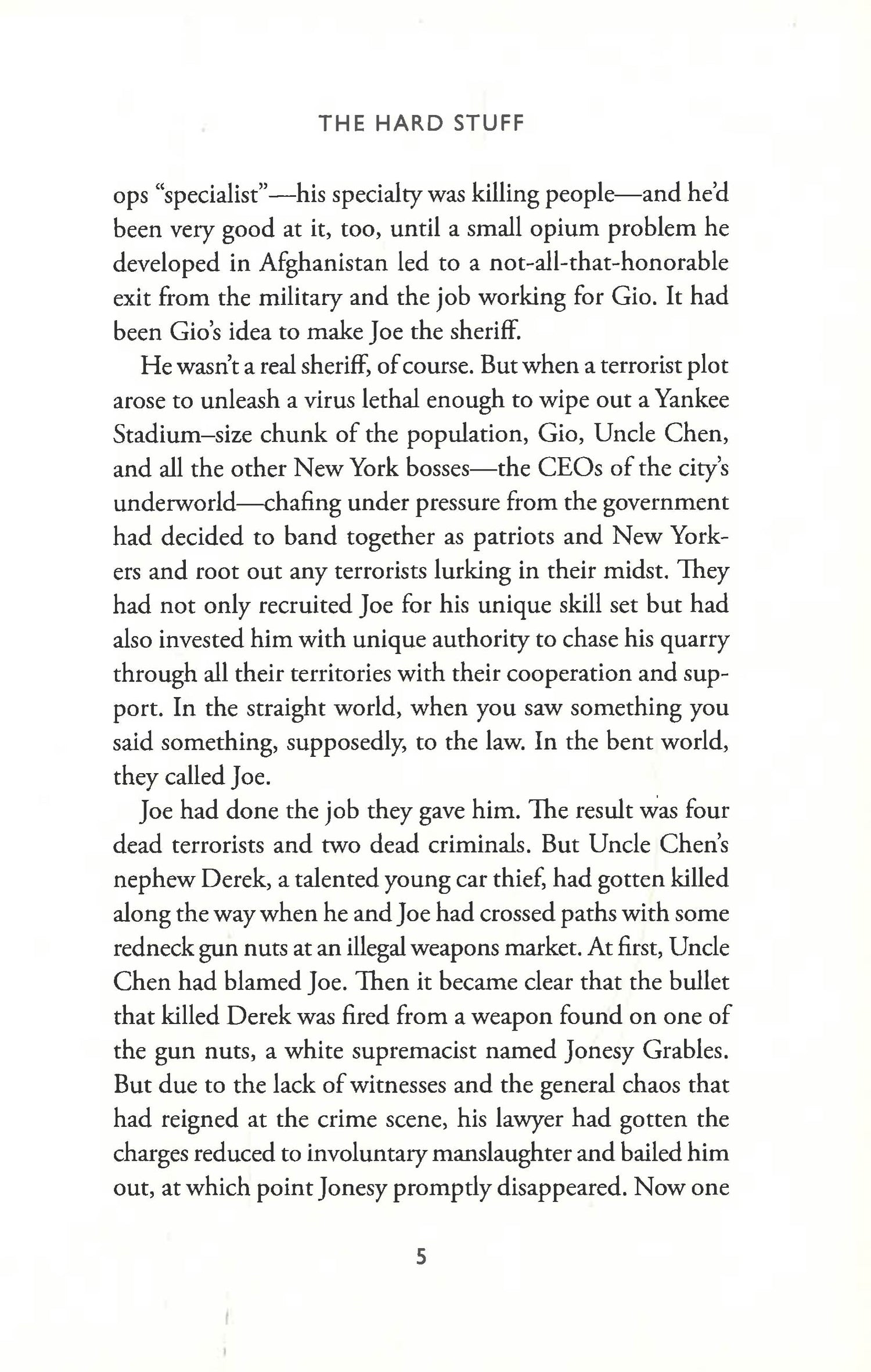 Ex-black-ops-specialist-turned-strip-club-bouncer Joe Brody has a new qualification to add to his resume: an alliance of New York City’s mob bosses has deemed him its “sheriff.” In the straight world, when you “see something” you “say something” to the law. In the bent world, they call Joe.