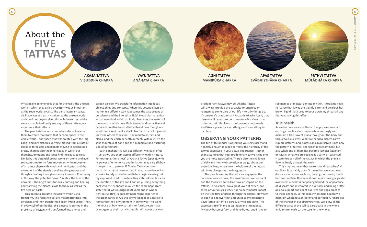 Restore balance and harmony to both body and mind with this step-by-step guide to enhancing the chakra-tattva energy system through yoga. Discover the five forces of vitality - the panchatattva - housed in the body's five corresponding chakras, or energy centres. Through the practice of specific yoga postures beneficial to each tattva you can improve the flow of vitality (prana) within your body, to achieve a healthier, happier life. Clear illustrations and instructions are included throughout, along with further techniques for balance, breathwork, gestures, visualizations, mantras and diet. There are also targeted routines for alleviating a range of common ailments.