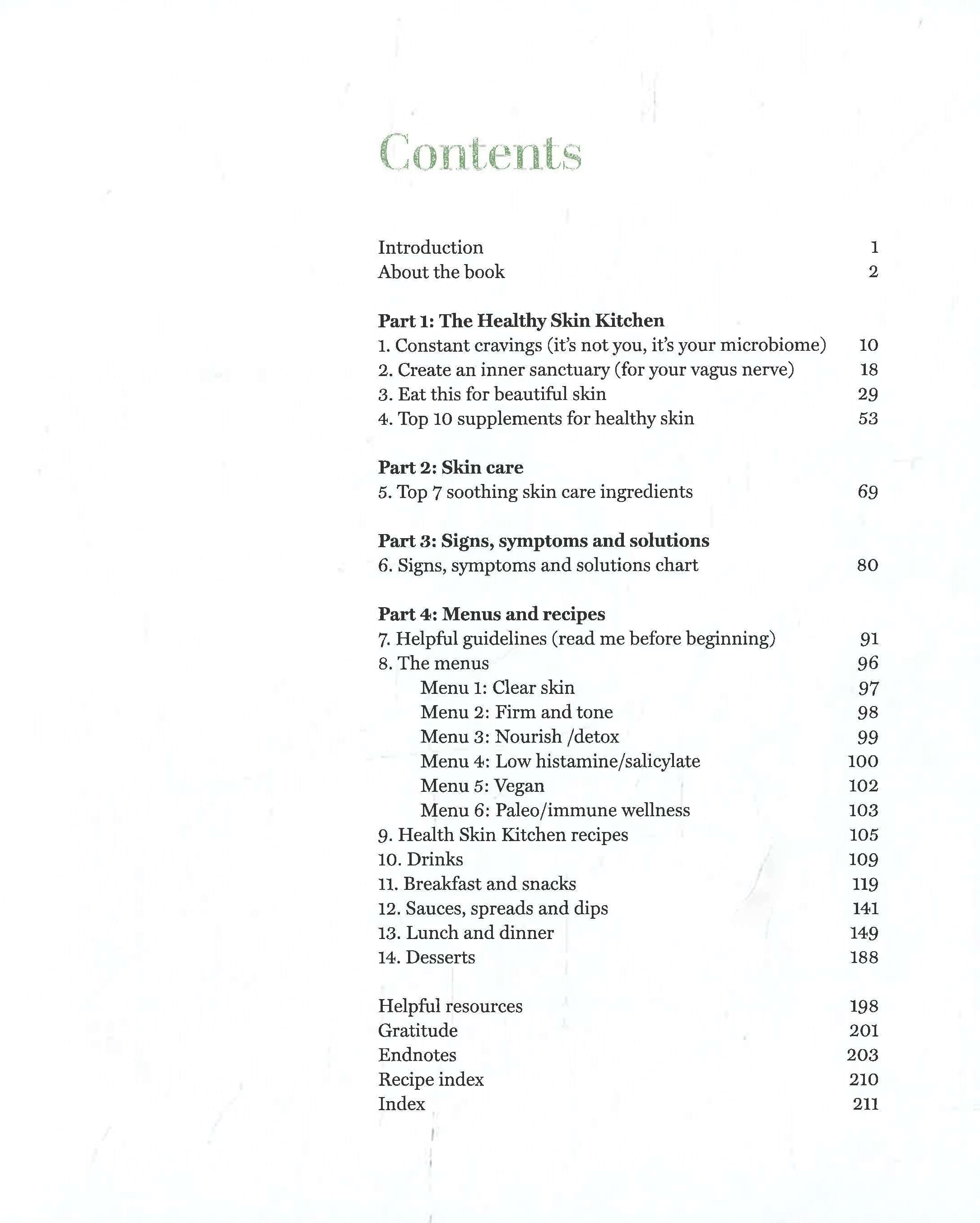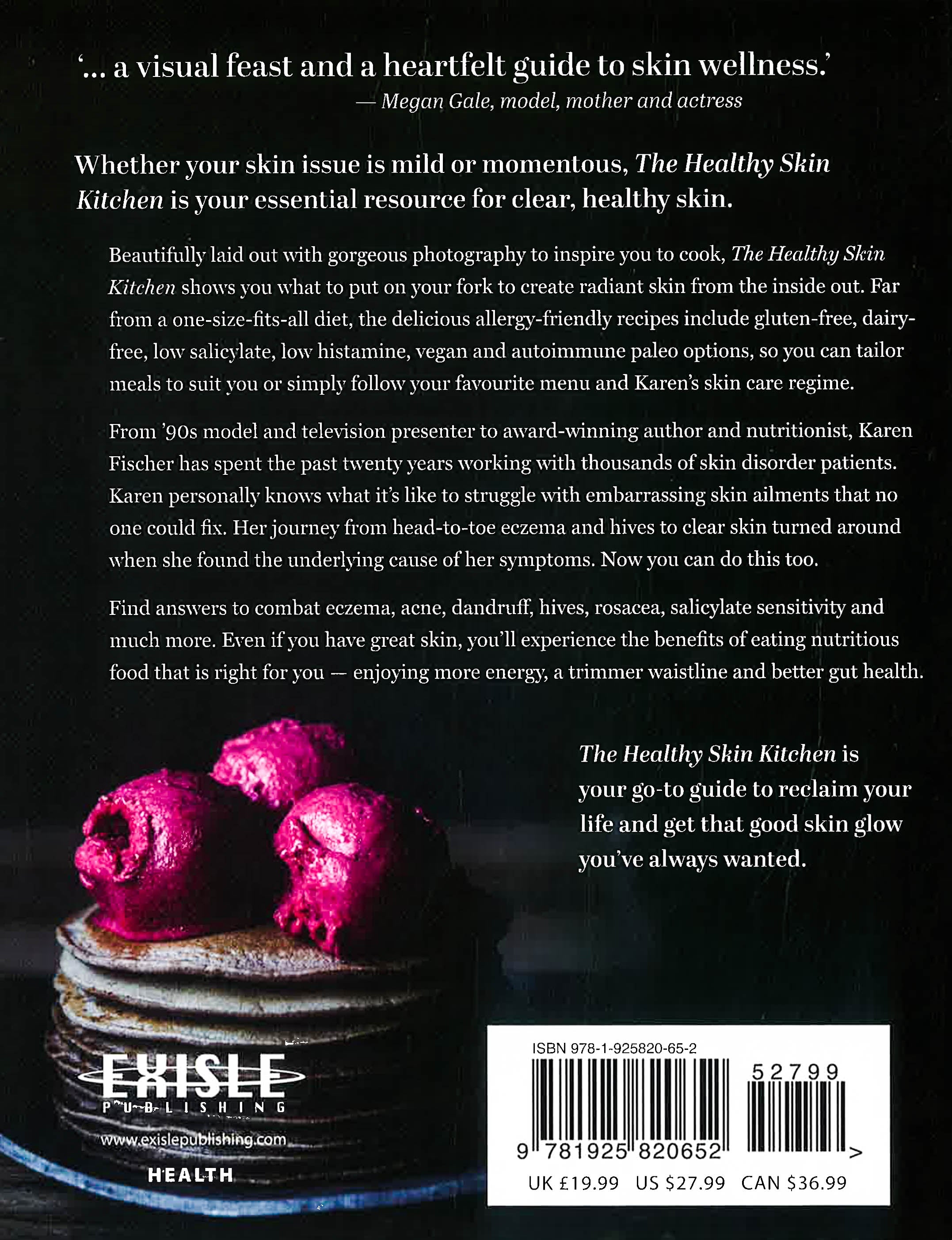 Find answers and recipes to combat acne, allergies, dandruff, leaky gut, migraines, gluten intolerance, rosacea, and many more conditions. Even those without skin problems will experience the benefits of eating nutritious food that is right for them and will glow with good health inside and out. Care for yourself and reclaim your life with The Healthy Skin Kitchen.