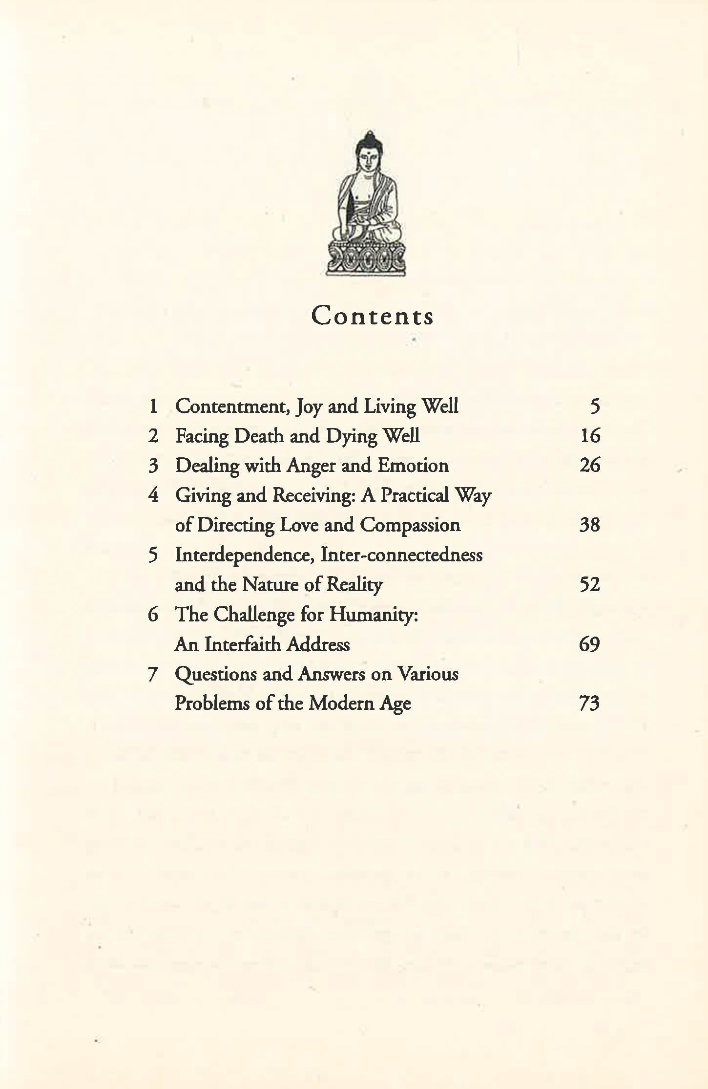 The Dalai Lama describes how to bring wisdom and compassion into daily life. He explores the fundamentals of the Buddha's teaching, from basic advice on how to deal with anger and other emotions, to the importance of compassion. Based on talks given by the Dalai Lama in London, this book includes the text of his first discourse in the West on the Four Noble Truths, as well as advice on how to develop compassion and combine a spiritual path with the demands of end-of-millennium life.