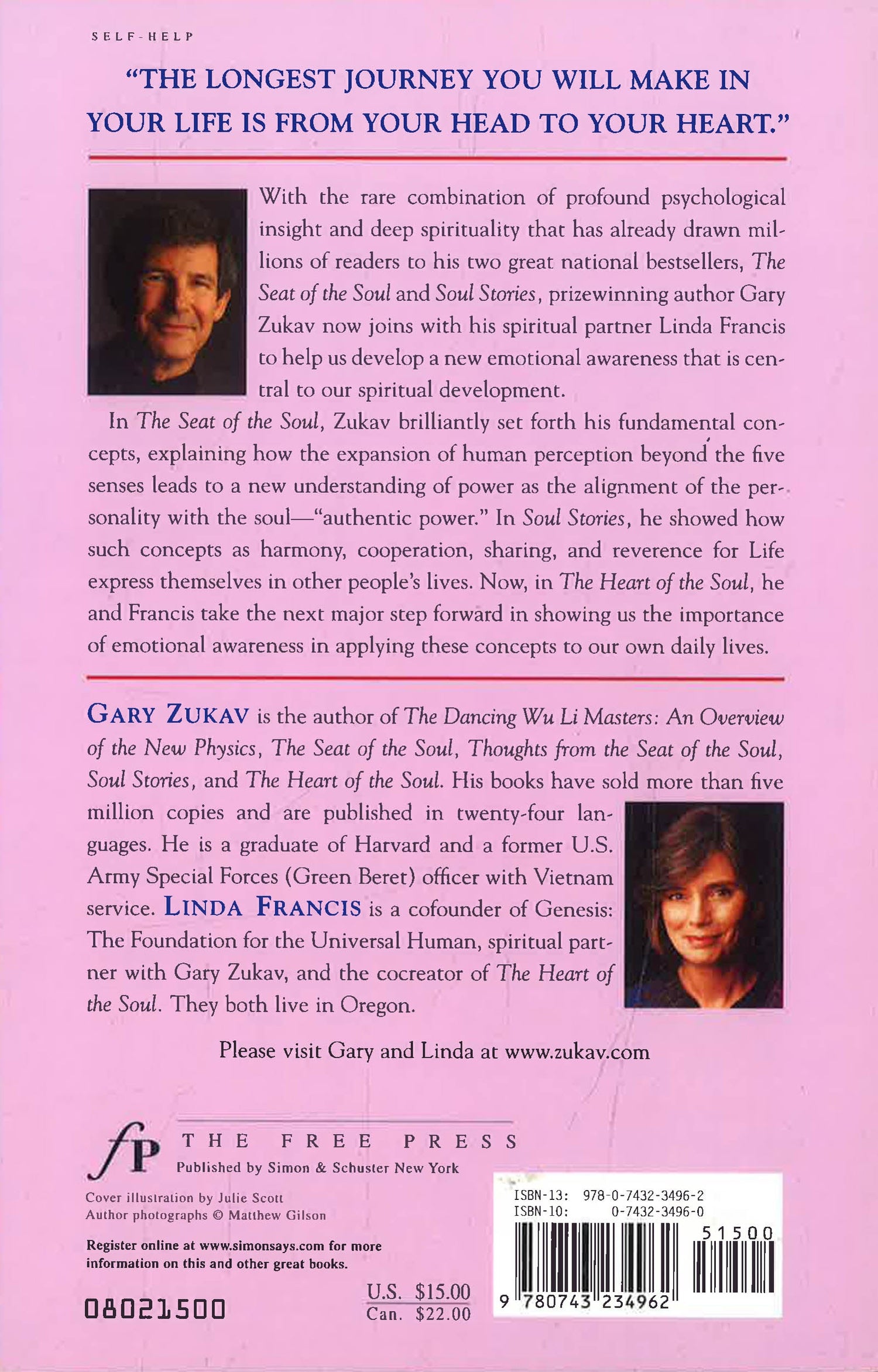 New York Times mega-bestselling author of The Seat of the Soul, Gary Zukav takes a giant leap forward in his message, with this guide to the next level of spiritual growth. "THE LONGEST JOURNEY YOU WILL MAKE IN YOUR LIFE IS FROM YOUR HEAD TO YOUR HEART." With the rare combination of profound psychological insight and deep spirituality that has already drawn millions of readers to his two great national bestsellers, The Seat of the Soul and Soul Stories, prizewinning author Gary Zukav now joins with his spiritual partner Linda Francis to help us develop a new emotional awareness that is central to our spiritual development. In The Seat of the Soul, Zukav brilliantly set forth his fundamental concepts, explaining how the expansion of human perception beyond the five senses leads to a new understanding of power as the alignment of the personality with the soul -- "authentic power." In Soul Stories, he showed how such concepts as harmony, cooperation, sharing, and reverence for Life express themselves in other people's lives. Now, in The Heart of the Soul, he and Francis take the next major step forward in showing us the importance of emotional awareness in applying these concepts to our own daily lives.show more