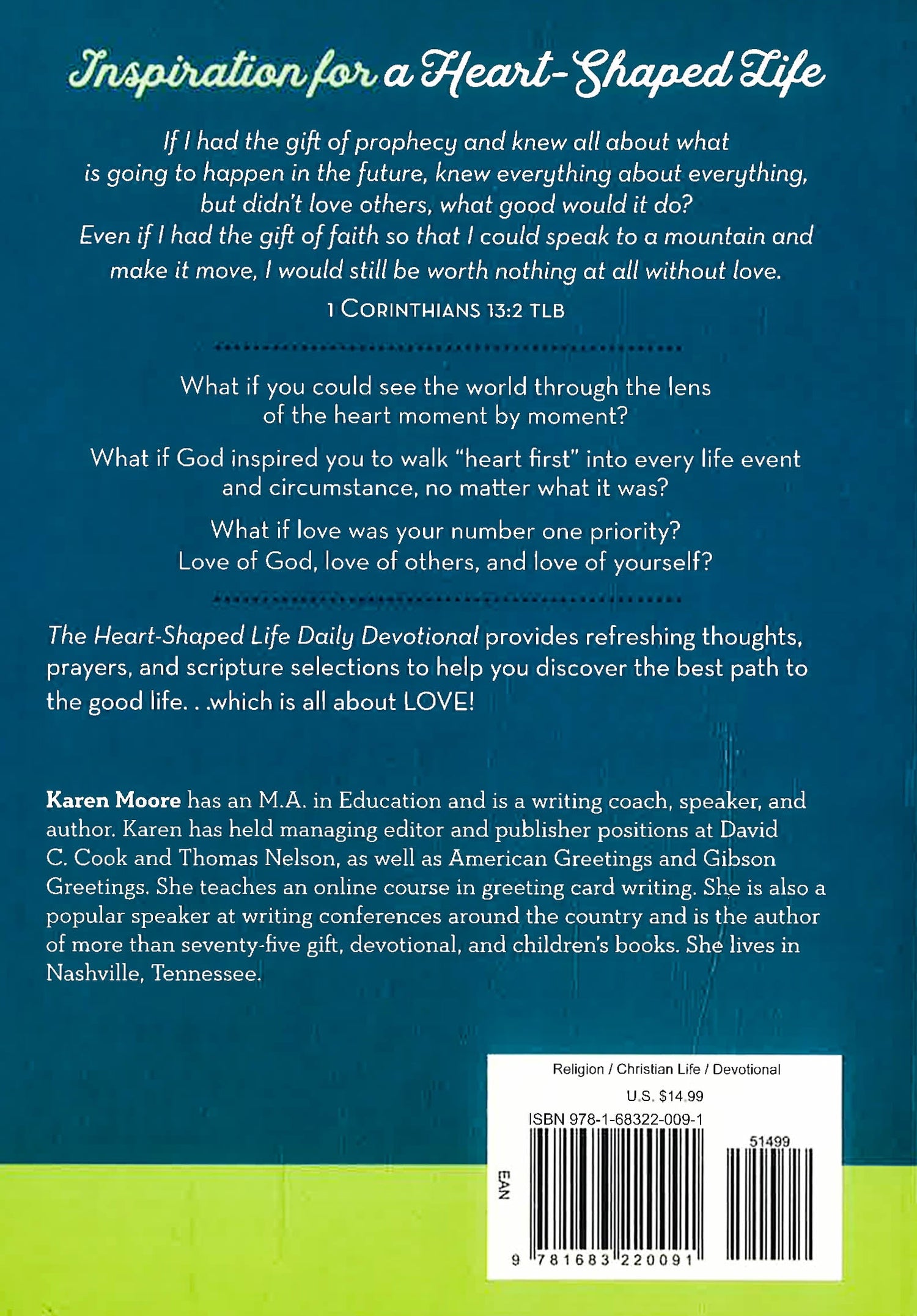 The Heart-Shaped Life Daily Devotional provides refreshing thoughts, prayers, and scripture selections to help you discover the best path to the good life. . .which is all about LOVE!