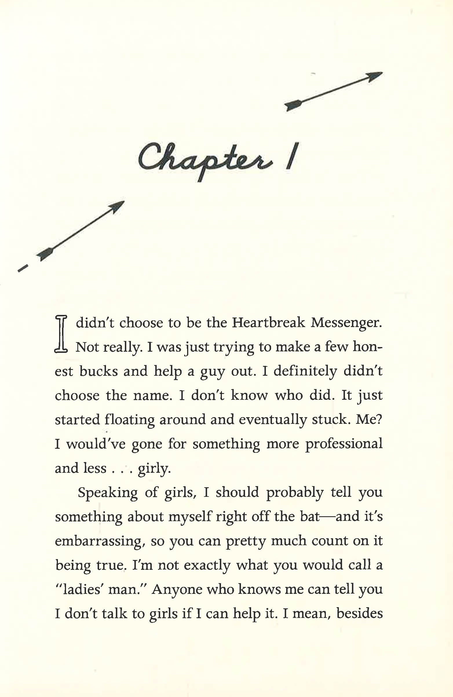 Twelve-year-old Quentin never asked to be the Heartbreak Messenger. It just kind of happened, and he can't let a golden opportunity pass him by. The valuable communication service he offers is simple: He delivers breakup messages. For a small fee, he will deliver that message to "your" soon-to-be ex. If you order the deluxe package, he'll even throw in some flowers and a box of chocolates. You know . . . to soften the blow.At first, Quentin's entrepreneurial brainchild is surprisingly successful, which is great, because he suspects his mom, who works as a car mechanic, is worried about money. But as he interacts with clients, message recipients, and his best friend, Abigail, it doesn't take long for him to wonder if his own heart will remain intact. In "The Heartbreak Messenger" by Alexander Vance, Quentin discovers that the game of love and the emotions that go with it are as complicated as they come even for an almost-innocent bystander."