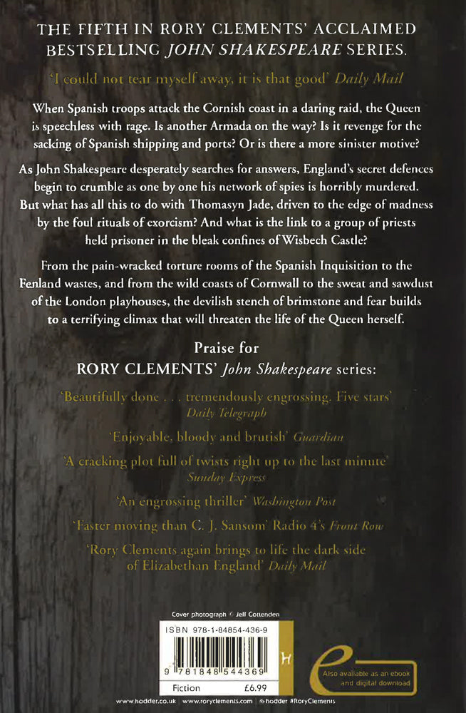 *****Part of the bestselling John Shakespeare series of Tudor spy thrillers from Rory Clements, winner of the Ellis Peters Historical Fiction Award*****'[Clements] does for Elizabeth's reign what CJ Sansom does for Henry VIII's' Sunday Times**********England may have survived the Armada threat of 1588, but when Spanish galleys land troops in Cornwall on a lightning raid seven years later, is it a dry-run for a new invasion? Revenge for the sacking of Spanish shipping and ports? A warning shot to Drake and Hawkins? Or is there, perhaps, a more sinister motive?The Queen is speechless with rage at Spain's temerity. Sir Robert Cecil demands answers. But as John Shakespeare tries to get a grip on events, England's secret defences begin to unravel as one by one his network of spies is horribly murdered. But what has all this to do with Thomasyn Jade, a girl driven to the edge of madness by the foul rituals of exorcism? And what is the link to a group of priests held prisoner in the bleak confines of Wisbech Castle?From the pain-wracked torture rooms of the Inquisition in Seville to the marshy wastes of fenland, from the wild coasts of Cornwall to the sweat and sawdust of the Elizabethan playhouses, and from the condemned cell at Newgate to the devilish stench of brimstone and fear as demons are driven out by unspeakable means, THE HERETICS builds to a terrifying climax that threatens the life of the Queen herself.