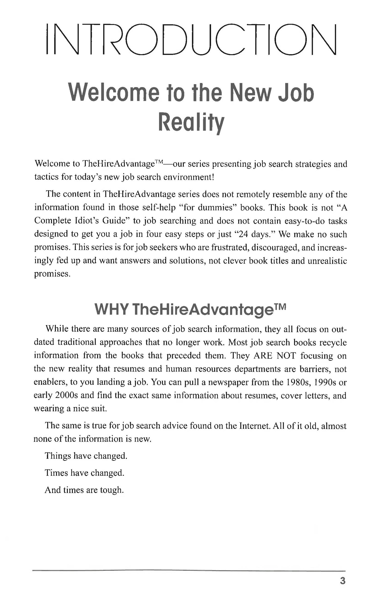 This essential guide is designed to help you quickly succeed in your search for employment in today's economy. Things have changed, times have changed, and times are tough. Old methods that typically rely on resumes and cover letters no longer work. New strategies and tools are needed for job-hunting success, and you will find them here. The Hire Advantage combines the four key milestones to employment based on Greg Wood's proven job-hunting series, TheHireRoad: Packaging - teaches you how to implement new and unique tools that will clearly separate you from your competition. Promotion - introduces strategies and techniques that help you successfully penetrate the hidden job market by broadcasting your value to the business community, not your resume. Product Demonstration - teaches you the techniques to conduct a proactive, strategic interview that will greatly enhance your chances of getting the offer. Pricing - teaches you how to negotiate the difference between what you're offered and your true worth to the organization.