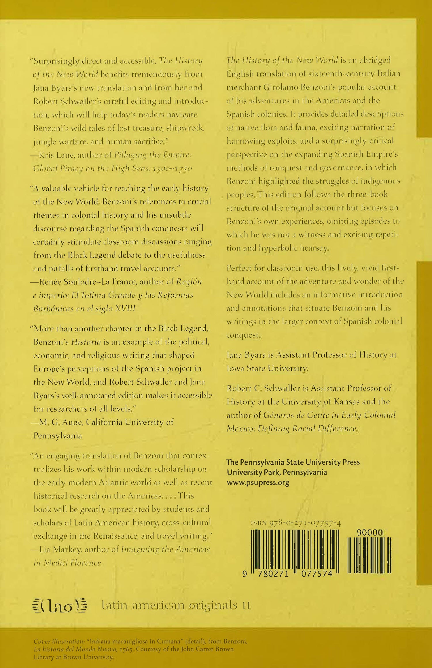 The first English-language version published since 1847, this volume includes an informative introduction and annotations that situate Benzoni and his fascinating writings in the larger context of Spanish colonial conquest. Perfect for classroom use, this is a lively, vivid firsthand account of the adventure and wonder of the New World.