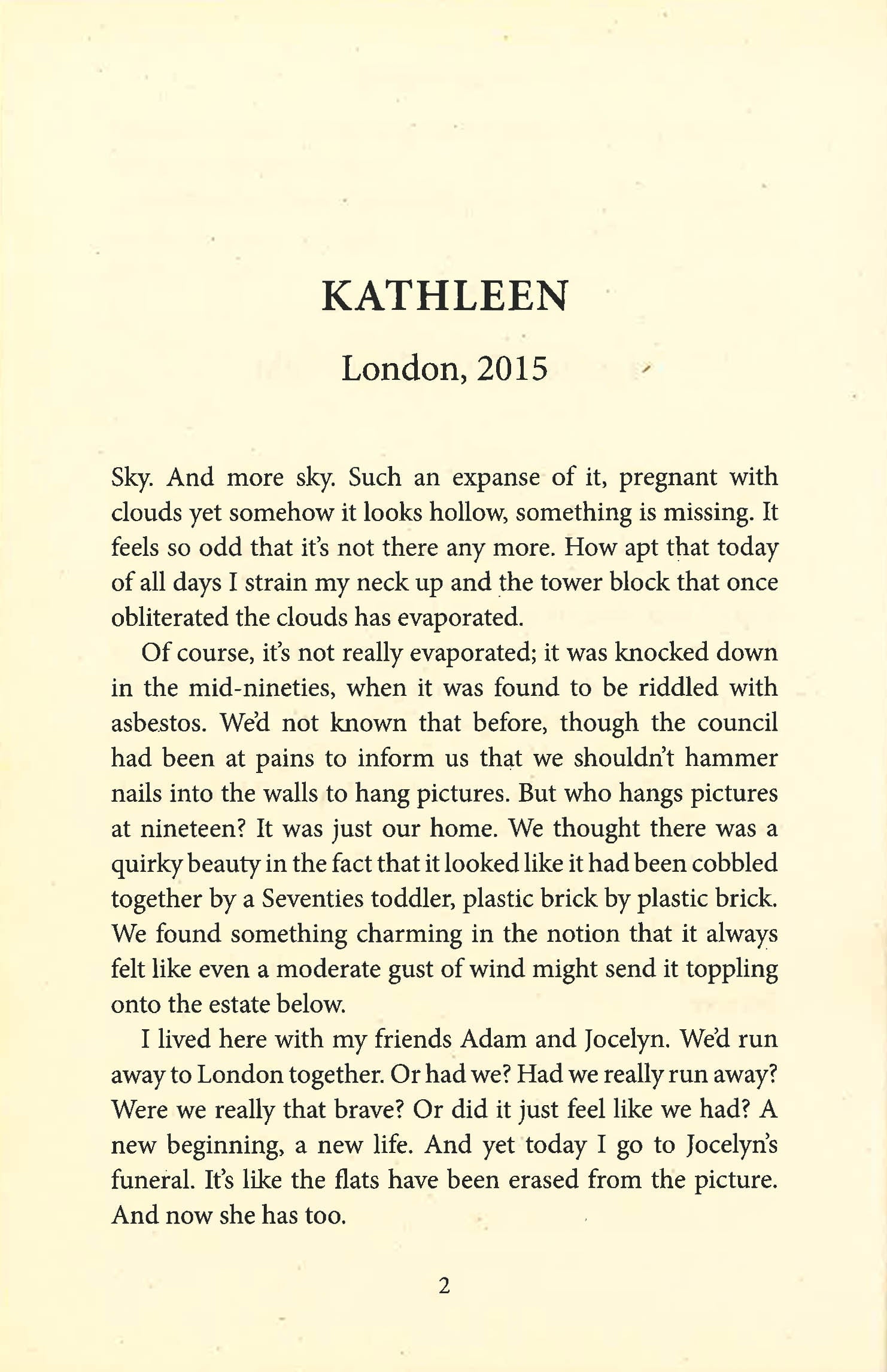 Kathleen is a borderline alcoholic, Adam is holding on to a shocking secret and Jocelyn is dead. Where did it all go wrong? How did having the world at their feet turn into having the weight of it on their shoulders?