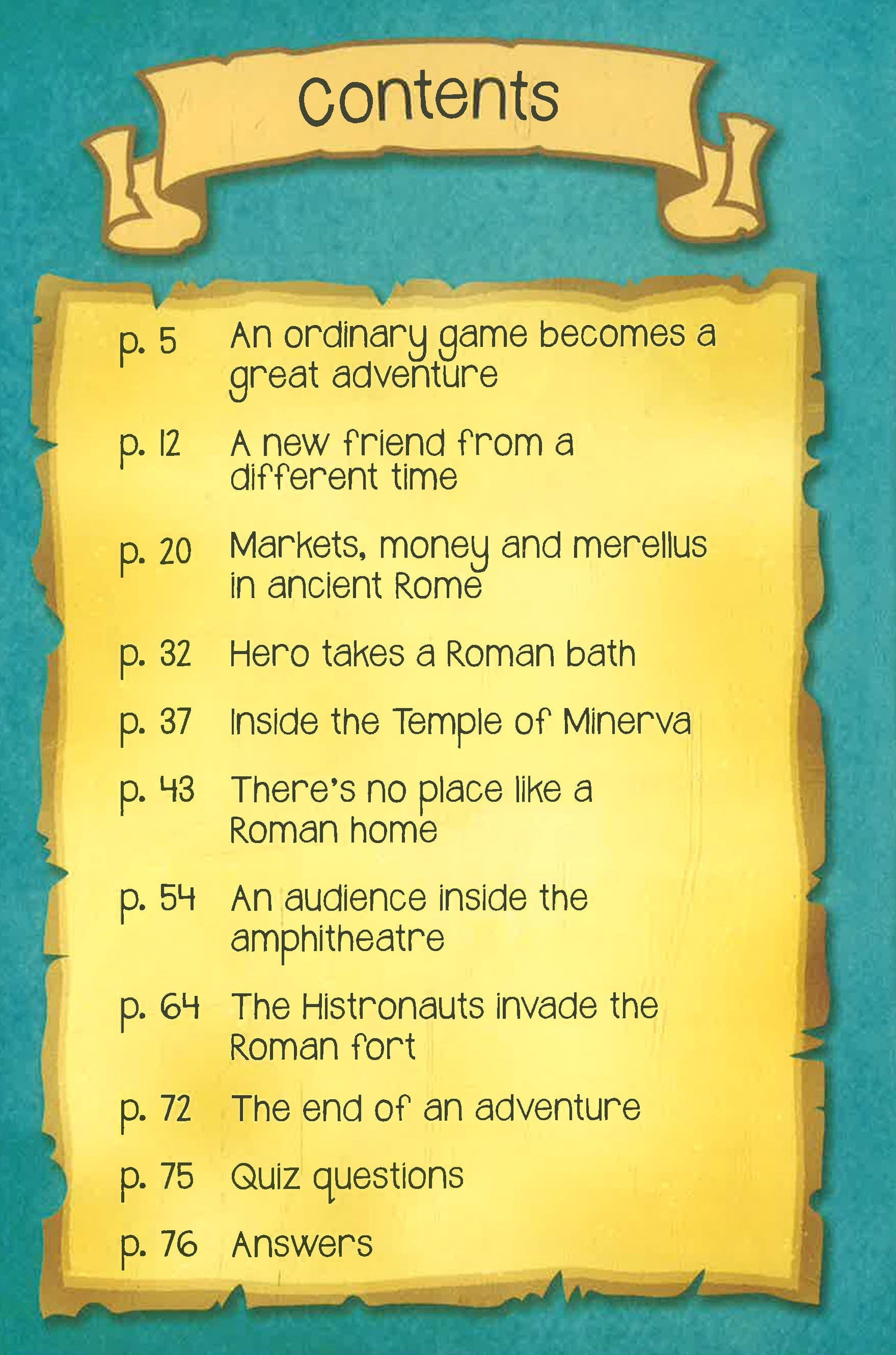 When the Histronauts travel back in time to the Roman Empire they’ll need your help to uncover the secrets of the past. Explore the Roman baths, try on the armour of a legionary, make a sacrifice at the temple of the gods, ride in a speeding chariot and meet ferocious gladiators. An exciting mix of history, facts and activity!