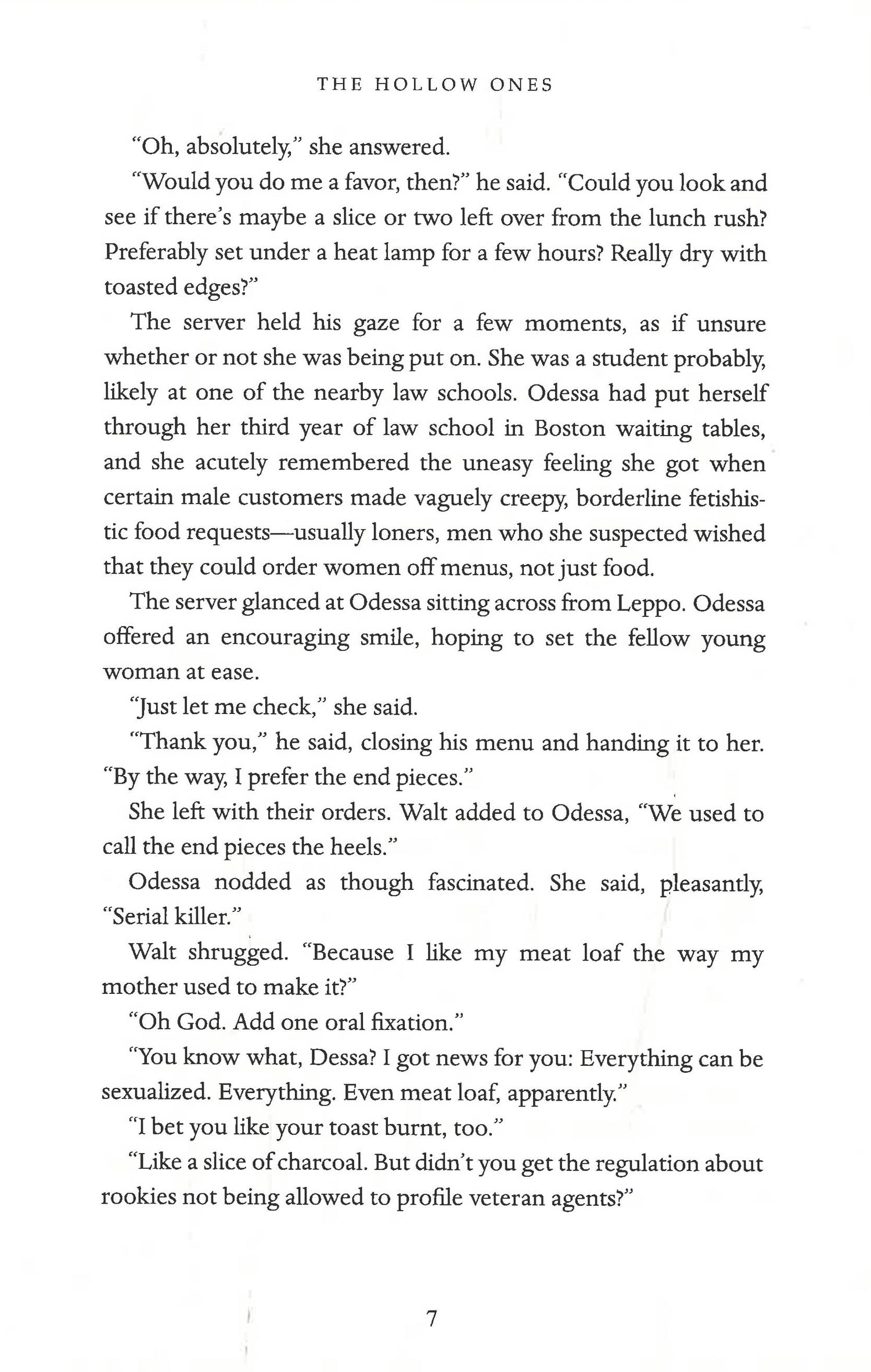Odessa Hardwicke's life is derailed when she's forced to turn her gun on her partner, Walt Leppo, a decorated FBI agent who turns suddenly, inexplicably violent while apprehending a rampaging murderer. The shooting, justified by self-defense, shakes the young FBI agent to her core. Devastated, Odessa is placed on desk leave pending a full investigation. But what most troubles Odessa isn't the tragedy itself -- it's the shadowy presence she thought she saw fleeing the deceased agent's body after his death.