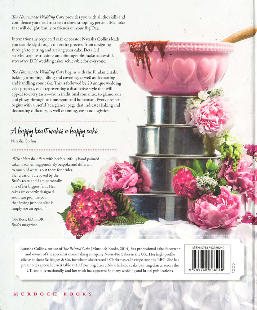 Making your own wedding cake is easy when you've been shown the right materials and techniques, and this is the only book to teach you. It is full of step-by-step guidance and advice, with plenty of tips to help a novice create something stunning and inspirational. This visually enticing step-by-step cake baking and decorating manual makes DIY wedding cakes easily accessible for everyone. In text and images that are both instructional and entertaining, Natasha Collins takes the reader through the whole process of choosing their design, baking their cake, embellishing it, transporting it, presenting it and serving it, so that they can be certain of success at every stage. Every project includes a timetable indicating how long each part of the process will take, and gives a schedule for when the cake should best be decorated and set up in relation to when it is going to be eaten. The book begins with basic instructions such as ingredients; equipment; trimming, filling and covering a cake; creating floral and paper decorations; and getting your cake from your kitchen and on to your guests' plates. The second half of the book comprises five chapters, each representing a distinctive style and theme (with four to five cake designs provided for each theme): Romantic beginnings (traditional flavoured cakes with romantic decorations); Putting on the glitz (glamorous, 'glitzy' cakes); Laughing all the way to the altar (fun, modern cakes); Home(spun) is where the heart is (rustic, pretty cakes); Magic in the air (bohemian style cakes).