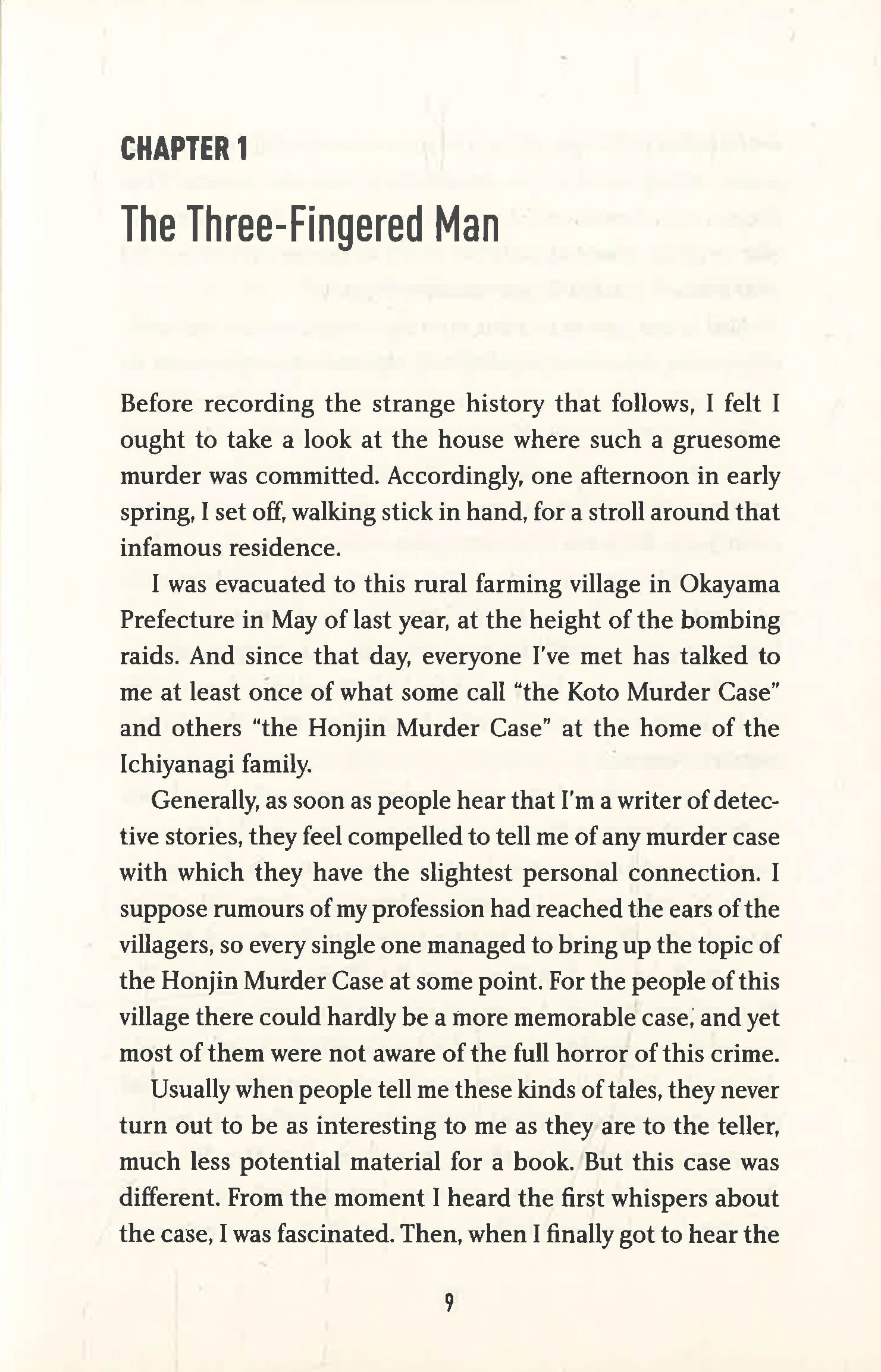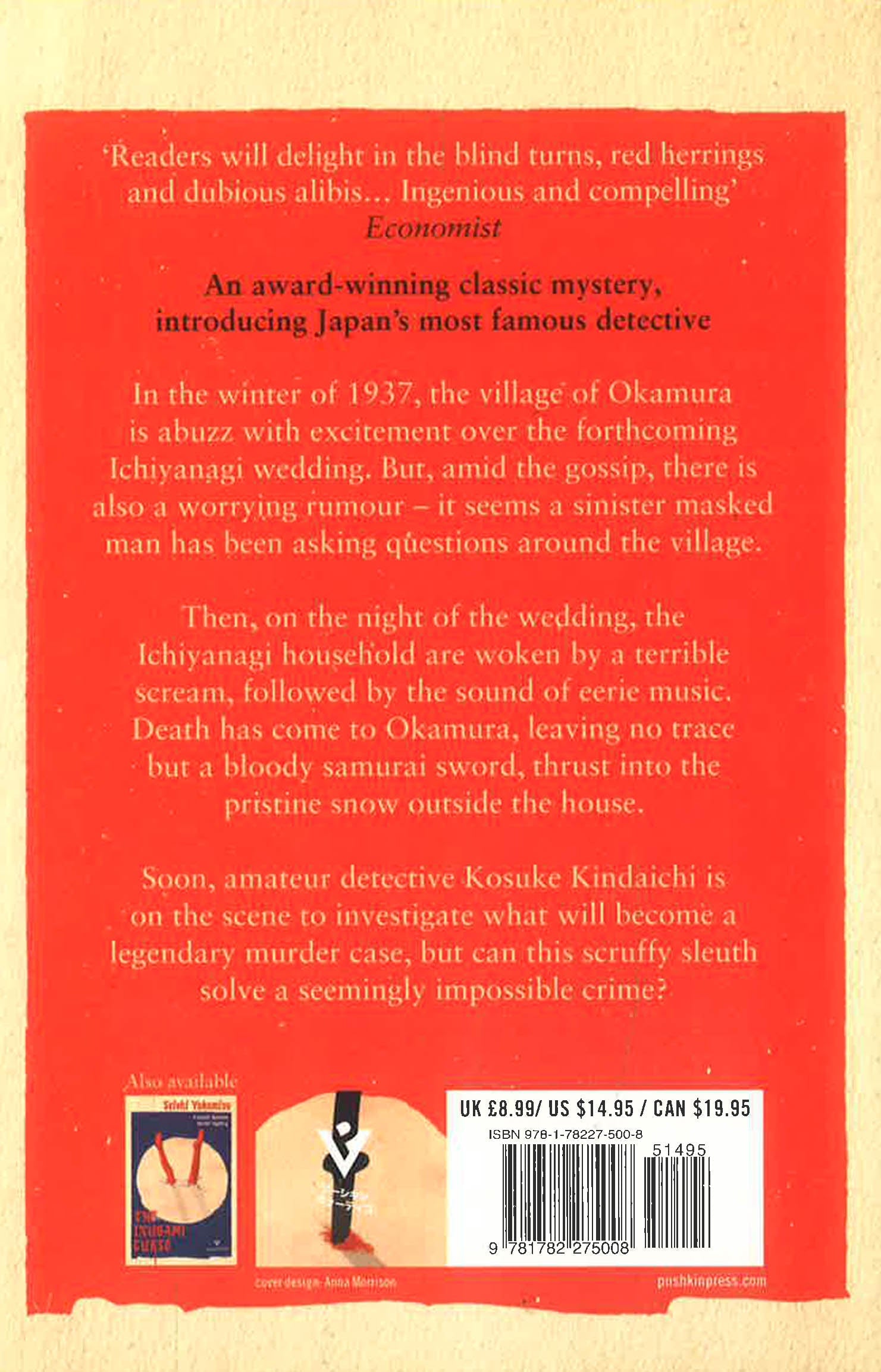In the winter of 1937, the village of Okamura is abuzz with excitement over the forthcoming wedding of a son of the grand Ichiyanagi family. But amid the gossip over the approaching festivities, there is also a worrying rumour - it seems a sinister masked man has been asking questions about the Ichiyanagis around the village. Then, on the night of the wedding, the Ichiyanagi family are woken by a terrible scream, followed by the sound of eerie music - death has come to Okamura, leaving no trace but a bloody samurai sword, thrust into the pristine snow outside the house. The murder seems impossible, but amateur detective Kosuke Kindaichi is determined to get to the bottom of it.