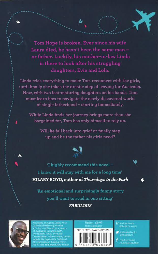 A compelling emotional rollercoaster of a novel from Mike Gayle, bestselling author of SEEING OTHER PEOPLE, TURNING THIRTY and MY LEGENDARY GIRLFRIEND. Tom Hope is broken. Ever since his wife Laura died he hasn't been the same man, and definitely not the same father. Luckily for Tom his mother-in-law Linda is around to pick up the pieces and look after his two struggling daughters, Evie and Lola. But Tom getting arrested on the first anniversary of his wife's death is the last straw for Linda.In a last bid attempt to make Tom reconnect with his daughters she takes drastic action and leaves for Australia. With two fast-maturing daughters Tom has to learn how to accept his responsibilities and navigate the newly dicovered world of single fatherhood - starting immediately. With only himself to rely on, will Tom fall back into grief or finally step up and be the father his girls need?