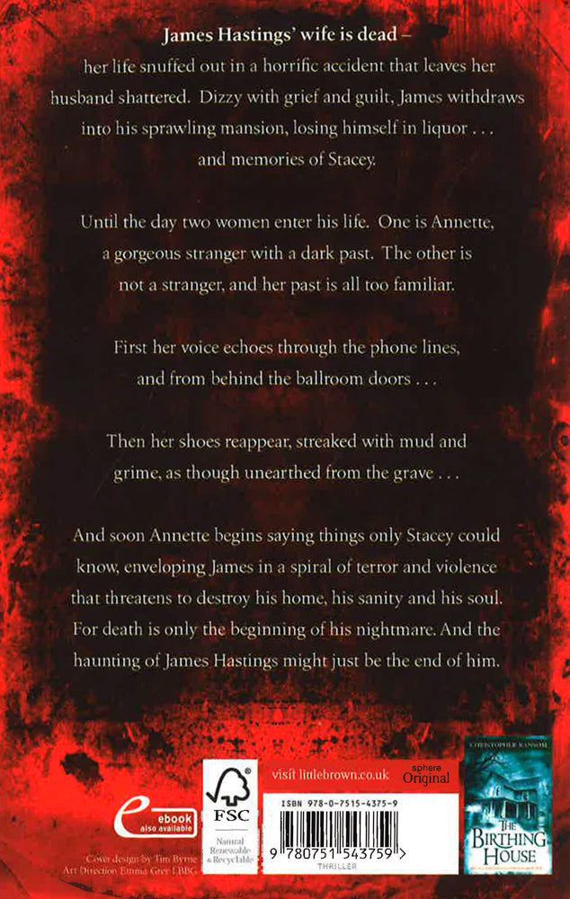 James Hastings' wife is dead - her life snuffed out in a horrific accident that leaves her husband shattered. Dizzy with grief and guilt, James withdraws into his sprawling mansion, losing himself in liquor . . . and memories of Stacey.Until the day two women enter his life. One is Annette, a gorgeous stranger with a dark past. The other is not a stranger, and her past is all too familiar.First her voice echoes through the phone lines, and from behind the ballroom doors . . .Then her shoes reappear, streaked with mud and grime, as though unearthed from the grave . . . And soon Annette begins saying things only Stacey could know, enveloping James in a spiral of terror and violence that threatens to destroy his home, his sanity, and his soul. For death is only the beginning of his nightmare. And the haunting of James Hastings might just be the end of him.