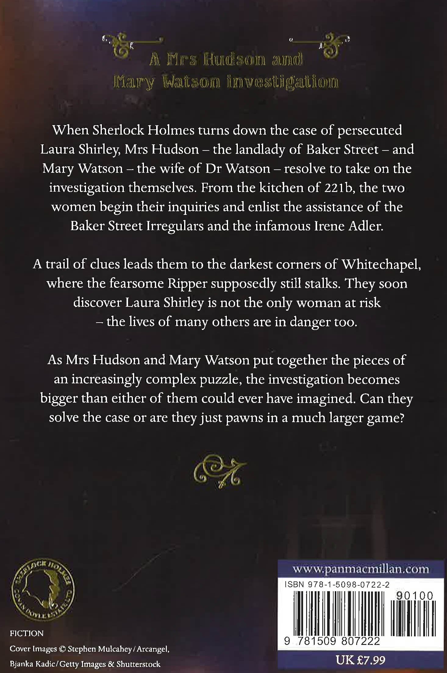 Behind every detective stands a great woman . . .When Sherlock Holmes turns down the case of persecuted Laura Shirley, Mrs Hudson - the landlady of Baker Street - and Mary Watson - the wife of Dr Watson - resolve to take on the investigation themselves. From the kitchen of 221b, the two women begin their inquiries and enlist the assistance of the Baker Street Irregulars and the infamous Irene Adler. A trail of clues leads them to the darkest corners of Whitechapel, where the fearsome Ripper supposedly still stalks. They soon discover Laura Shirley is not the only woman at risk - the lives of many others are in danger too.As Mrs Hudson and Mary Watson put together the pieces of an increasingly complex puzzle, the investigation becomes bigger than either of them could ever have imagined. Can they solve the case or are they just pawns in a much larger game?It is time for Mrs Hudson and Mary Watson to emerge from the shadows and stand in the spotlight . . .