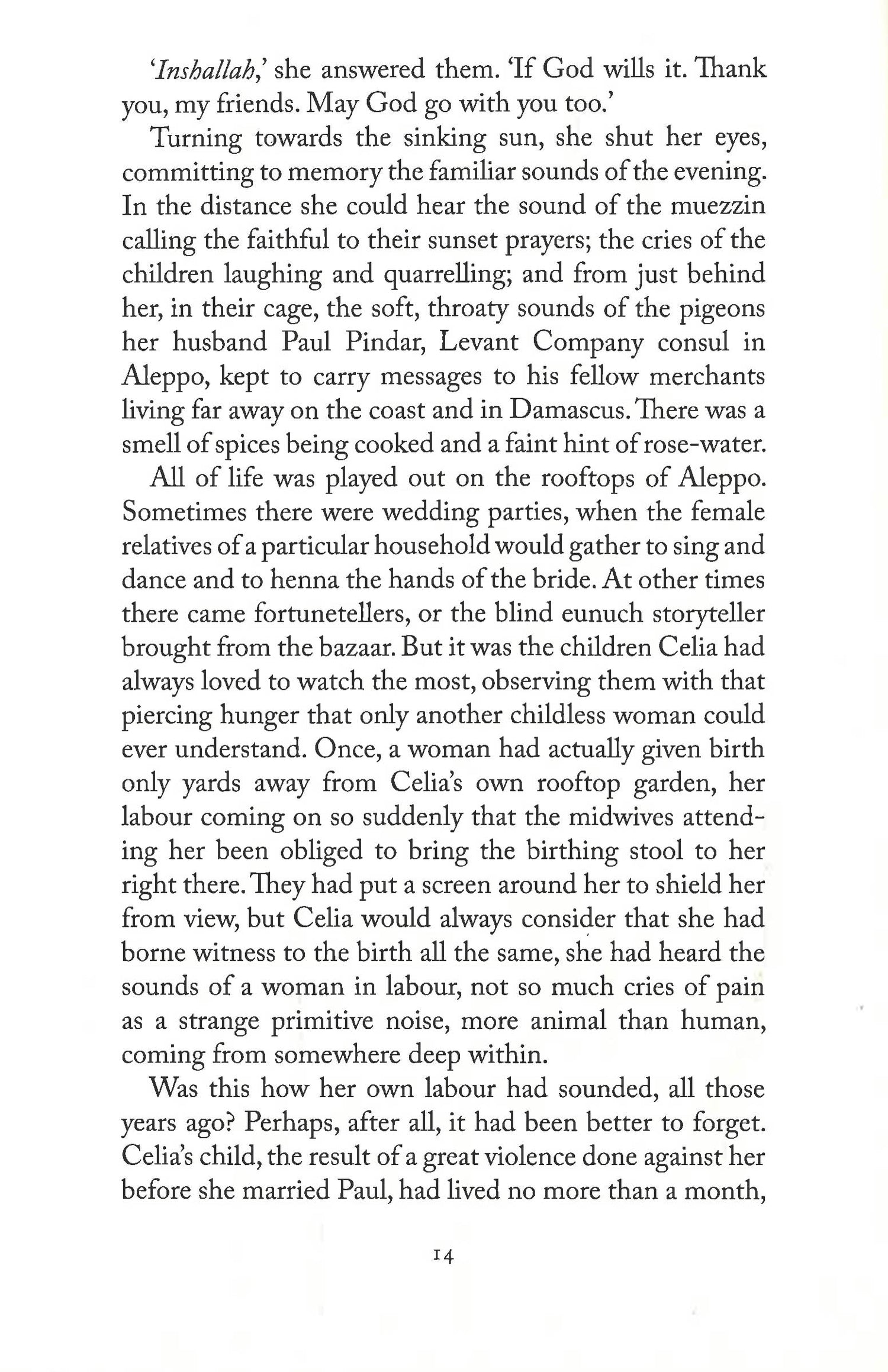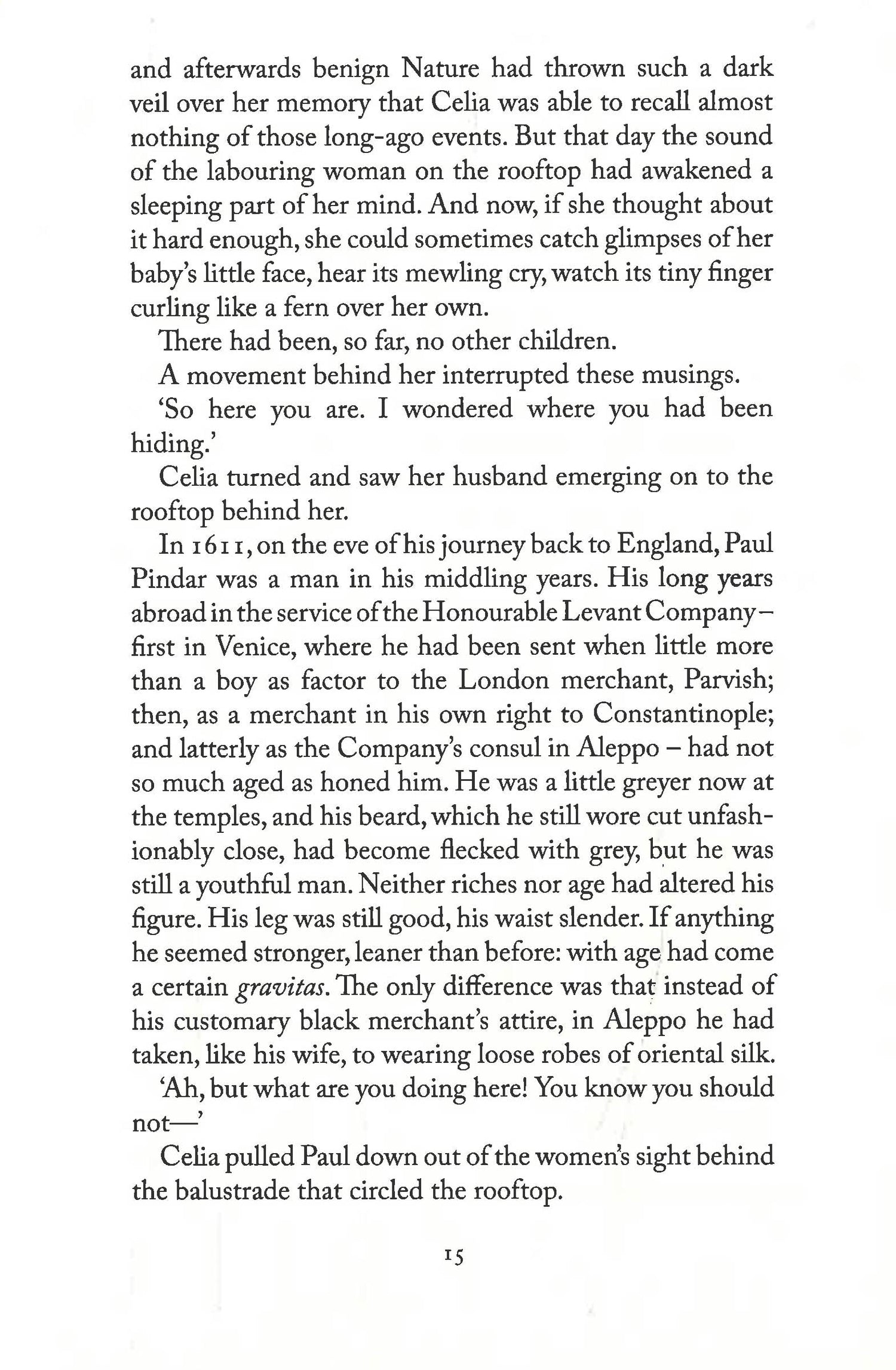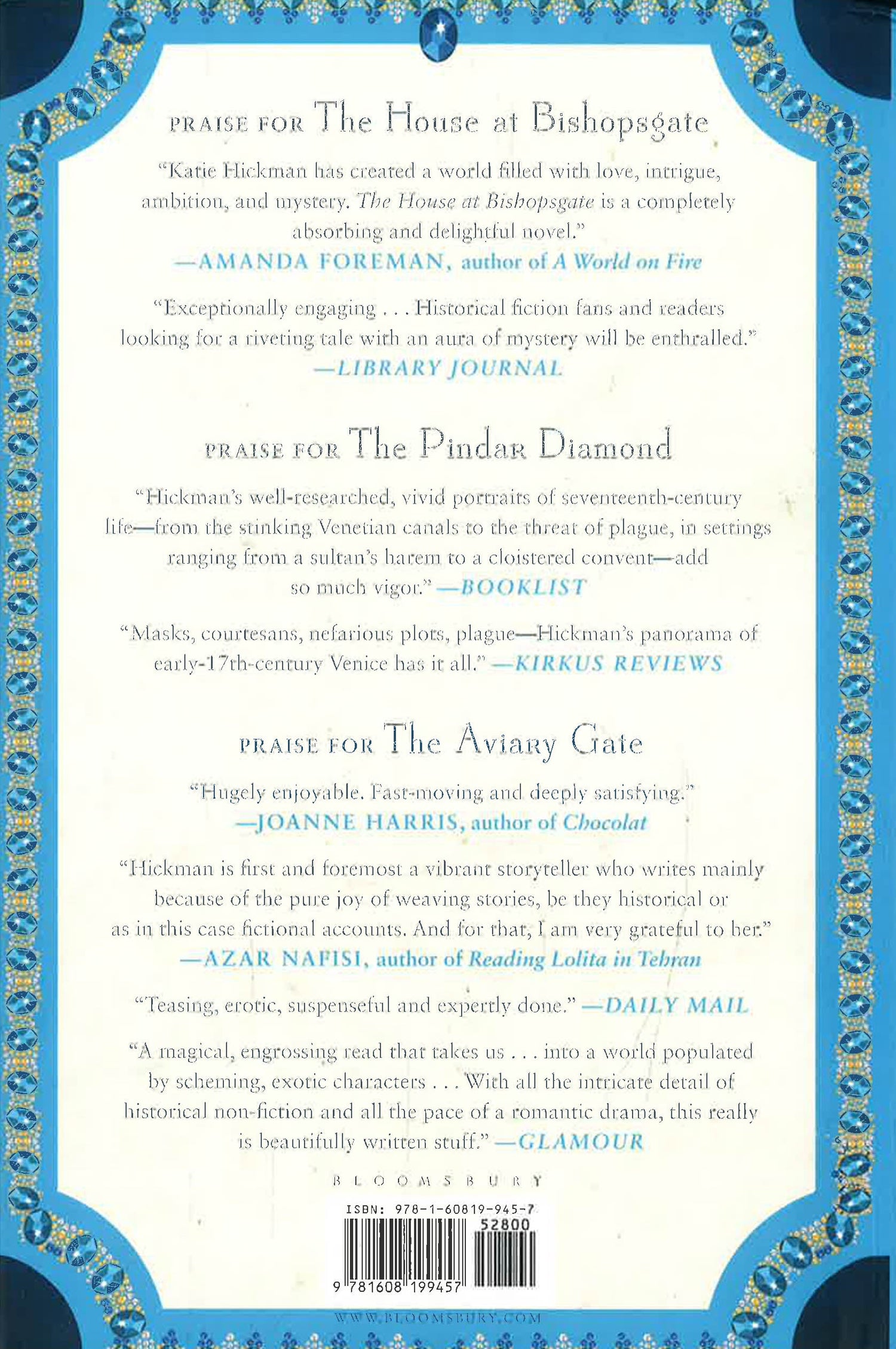 Most men of stature wouldn't marry their betrothed after she'd been kidnapped and forced into sexual slavery in the harem of the Great Turk, but Paul Pindar, wealthy merchant and former ambassador to Constantinople, is not most men. When Paul and Celia, finally reunited, return to London in 1611, his house at Bishopsgate has stood empty for nearly a decade. A phalanx of carpenters, upholsterers, and gardeners have been summoned to restore it to its former glory.But all is not as it seems. Celia is frail, and their marriage, despite her longing, is childless. Traumatized by her experiences, she is unprepared for English society and the duties of managing a house with a full staff. Paul arranges for Celia's old friend, Annetta, to join them in England as Celia's companion, but Annetta arrives to find that another woman, the widow Frances Sydenham, has insinuated herself into the Pindar household. Lady Sydenham seems to have a mysterious hold over Celia and, Annetta suspects, increasingly over Paul.Who is this woman, and what are her motives? Like everyone else, including members of the royal family and Pindar's greedy brother Rafe, she is fascinated by the Sultan Blue, the legendary diamond Pindar has brought back from the Middle East. All of London wants to get their hands on the jewel, despite the dark magic properties that are said to surround it, but Paul Pindar might be the only merchant who doesn't have a price.