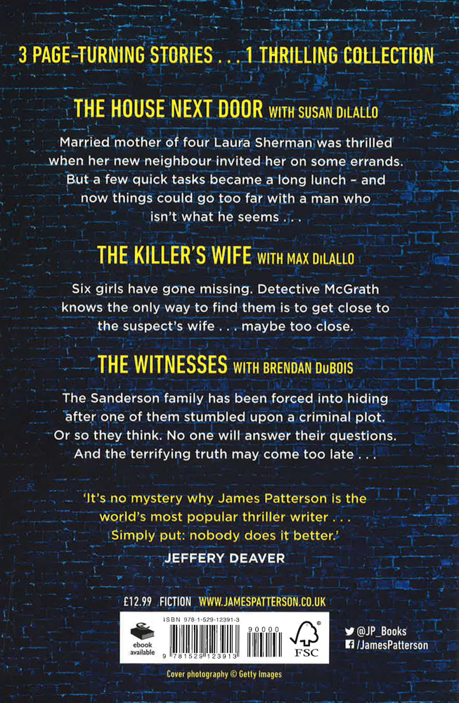 From the world's bestselling thriller writer - three chilling stories in print for the first time!The House Next Door (with Susan DiLallo): Married mother of four Laura Sherman was thrilled when her new neighbour invited her on some errands. Detective McGrath knows the only way to find them is to get close to the suspect's wife...From the world's bestselling thriller writer - three chilling stories in print for the first time! The House Next Door (with Susan DiLallo): Married mother of four Laura Sherman was thrilled when her new neighbour invited her on some errands. But a few quick tasks became a long lunch - and now things could go too far with a man who isn't what he seems... The Killer's Wife (with Max DiLallo): Six girls have gone missing. Detective McGrath knows the only way to find them is to get close to the suspect's wife... maybe too close. The Witnesses (with Brendan DuBois): The Sanderson family has been forced into hiding after one of them stumbled upon a criminal plot. Or so they think. No one will answer their questions. And the terrifying truth may come too late...