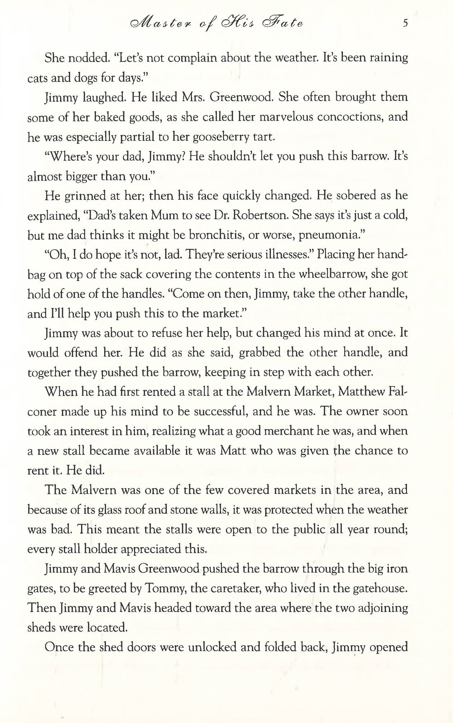 Victorian England is a country of sharp divides between rich and poor, but James Lionel Falconer, who spends his days working at his father's market stall, is determined to become a merchant prince. Even as a child, he is everything a self-made man should be: handsome, ambitious, charming, and brimming with self-confidence. James quickly rises through the ranks, proving himself both hardworking and trustworthy, and catching the eye of Henry Malvern, head of the most prestigious shipping company in London. But when threats against his reputation - and his life - begin to emerge, James will have to prove that he truly is the master of his fate.