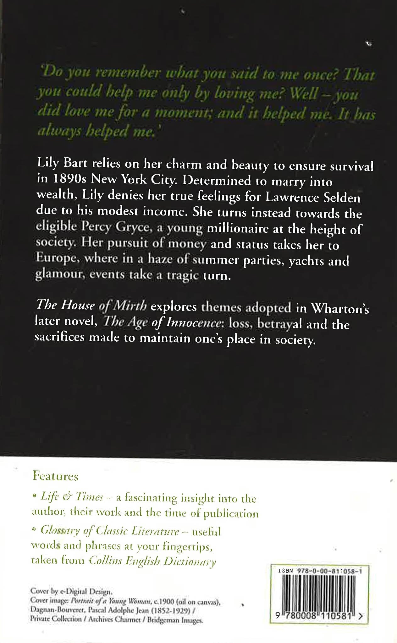 A bestseller when it was originally published nearly a century ago, Wharton's first literary success was set amid the previously unexplored territory of fashionable, turn-of-the-century New York society, an area with which she was intimately familiar. The tragic love story reveals the destructive effects of wealth and social hypocrisy on Lily Bart, a ravishing beauty. Impoverished but well-born, Lily realizes a secure future depends on her acquiring a wealthy husband. Her downfall begins with a romantic indiscretion, intensifies with an accumulation of gambling debts, and climaxes in a maelstrom of social disasters. More a tale of social exclusion than of failed love, The House of Mirth reveals Wharton's compelling gifts as a storyteller and her clear-eyed observations of the savagery beneath the well-bred surface of high society. As with The Age of Innocence and Ethan Frome, this novel was also made into a successful motion picture.