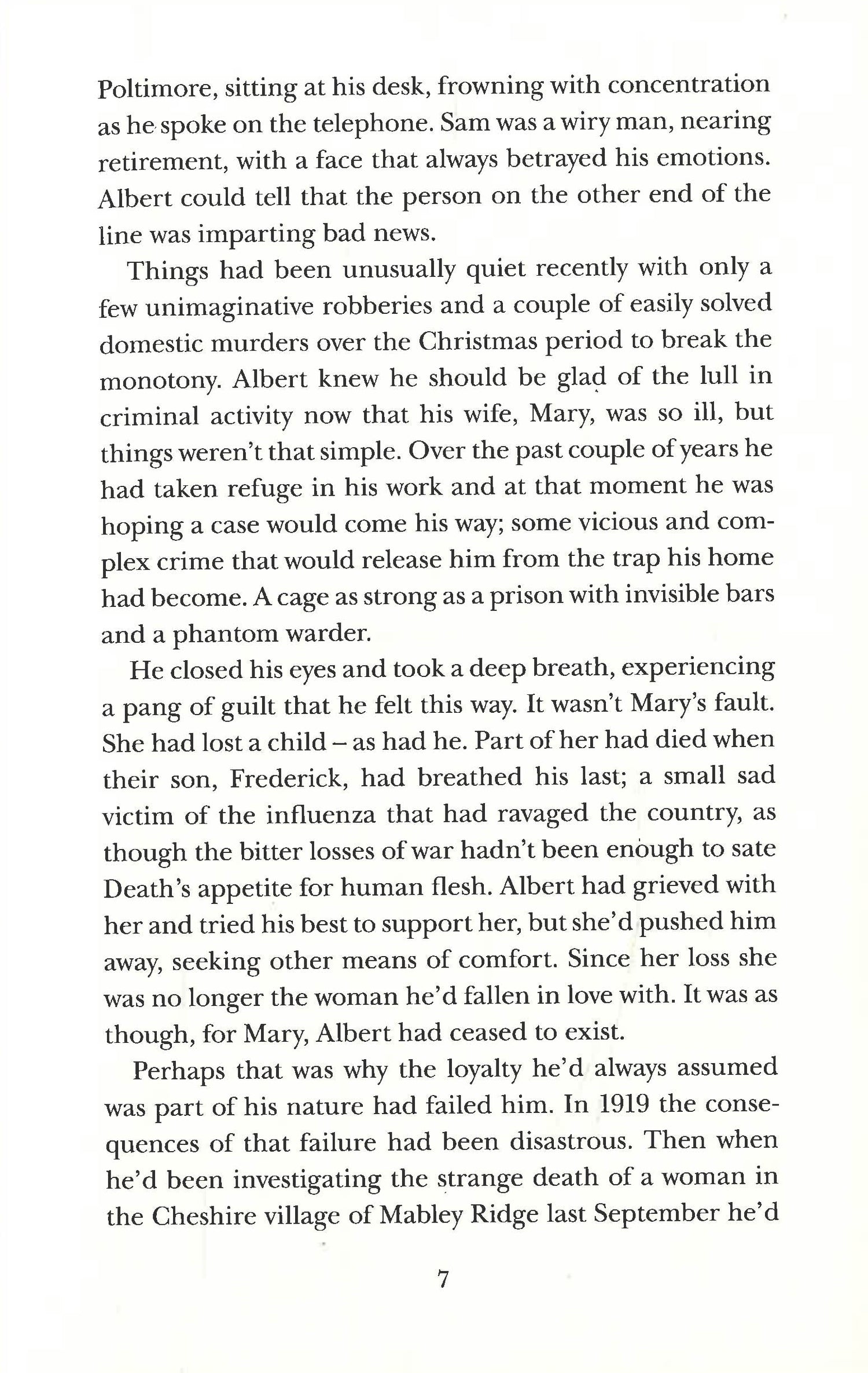Then there is another murder in Wenfield when an unfaithful young wife with a passion for books is accused of killing her husband. Could there be a link between all of Albert's cases? And can the detective, damaged by war and love, find peace at last?