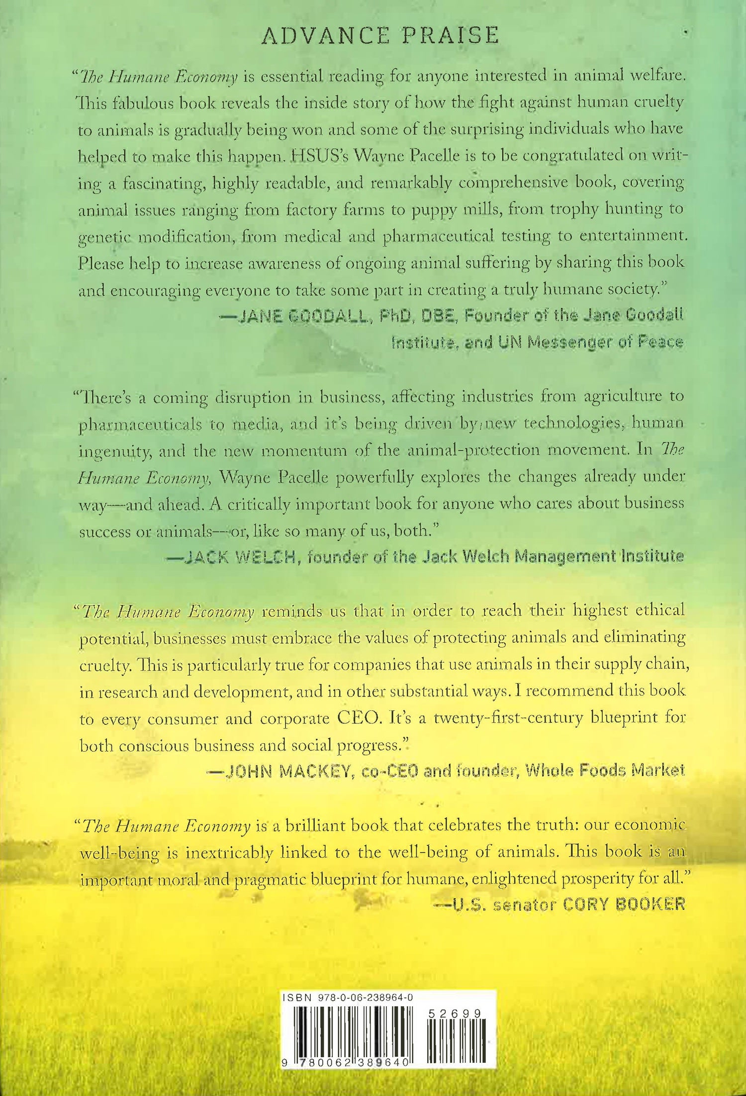 From the leader of the nation’s most powerful animal-protection organization comes a frontline account of how conscience and creativity are driving a revolution in American business that is changing forever how we treat animals and create wealth. Wayne Pacelle of the Humane Society of the United States reveals how entrepreneurs, Fortune 500 CEOs, world-class scientists, philanthropists, and a new class of political leaders are driving the burgeoning, unstoppable growth of the “humane economy.”