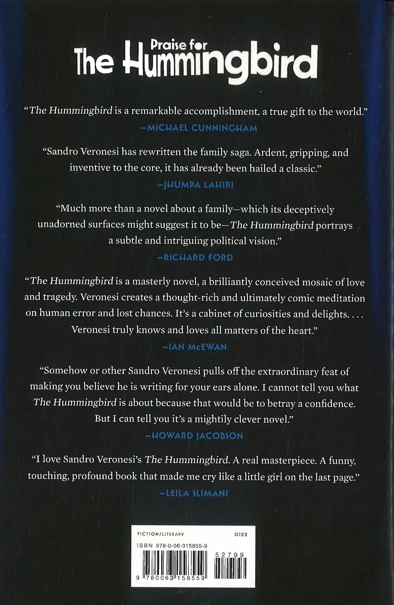A beautiful and compelling journey through time told in myriad narrative styles, The Hummingbird is a story of suffering, happiness, loss, love, and hope—of a man who embodies the quiet heroism that defines daily life for countless ordinary folk. A thrilling novel about the need to look to the future with hope and live with intensity to the very end, Sandro Veronesi’s masterpiece—eminently readable, rich in insight, and filled with interesting twists and revelations—is a portrait of human existence, the vicissitudes and vagaries that propel and ultimately define us.