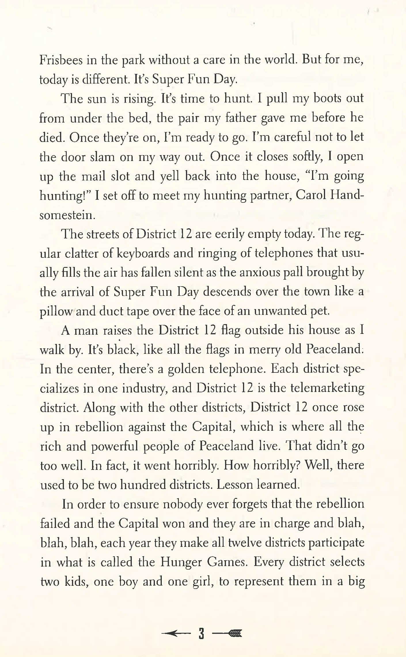 From the legendary comedic scholars who illuminated the tour de force TWILIGHT so brilliantly in the NEW YORK TIMES bestselling NIGHTLIGHT comes THE HUNGER PAINS, a hilarious send-up of the immensely popular dystopian young adult novel, THE HUNGER GAMES. . WINNING MEANS WEALtH, FAME, AND A LIFE OF tHERAPY LOSING MEANS DEAtH, BUt ALSO FAME! tHIS IS tHE HUNGER PAINS When Kantkiss Neverclean replaces her sister as a contestant in the Hunger Games, the second highest rated reality tV show in Peaceland, right after Extreme Home Makeover, she has no idea what to expect. Having lived her entire life in the telemarketing district's worst neighborhood, the Crack, she feels unprepared to fight to the death while simultaneously winking and looking adorable for the cameras. But when her survival rests on choosing between the dreamy hunk from home, Carol Handsomestein, or the doughy klutz, Pita Malarkey, Kantkiss finds that the toughest conflicts may not be found on the battlefield but in her own heart, which is unfortunately on a battlefield. Filled to the brim with suspense, romance, gratuitous violence, apathetic adults, and sexually suggestive gifts, the Hunger Pains is the hilarious tale of one girl's battle for survival and hope for love.
