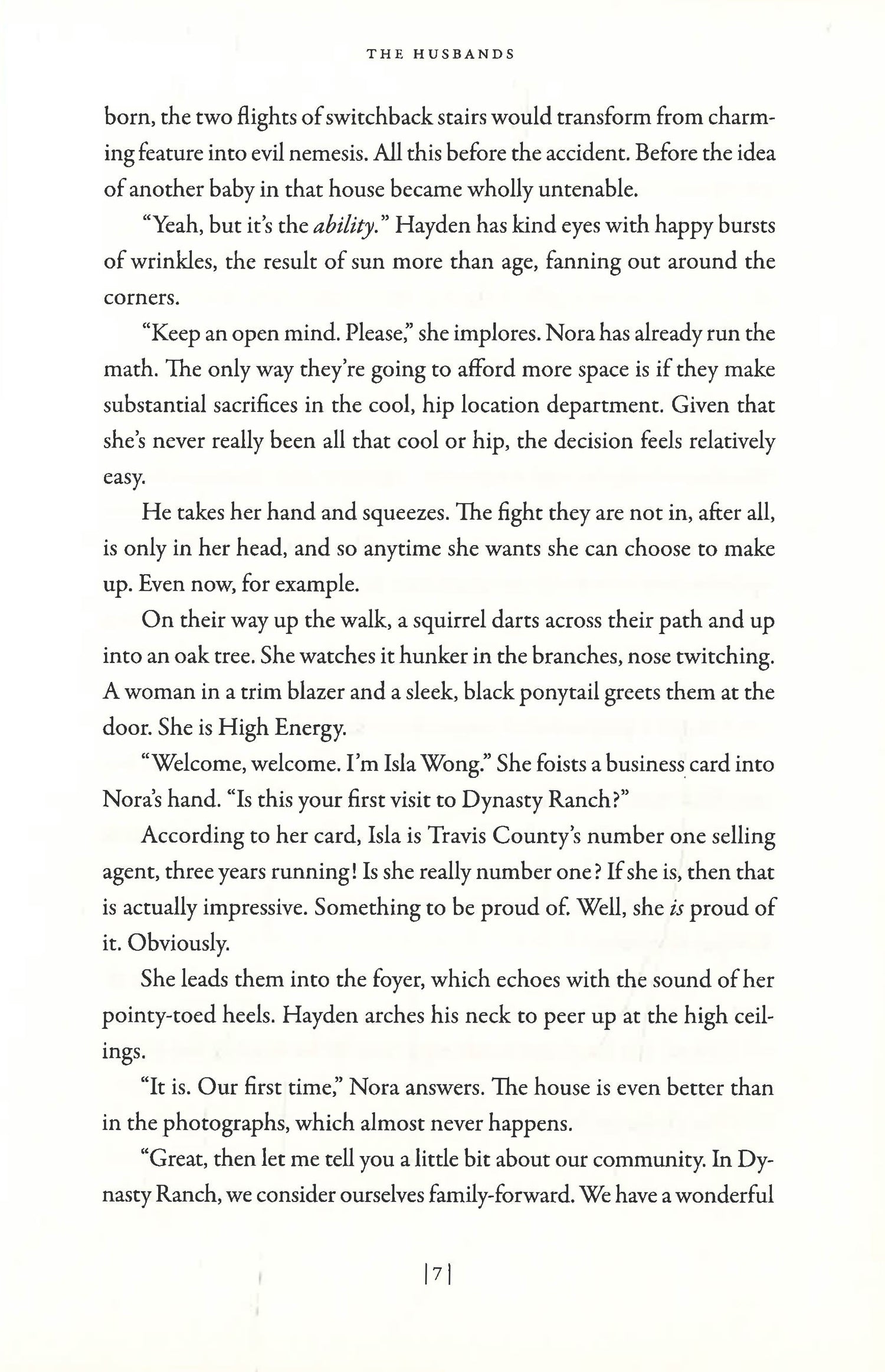 Nora thinks she's found the perfect new home for her family. But when she agrees to get involved in a wrongful death case in the neighbourhood, Nora becomes convinced that there's a dark secret at the heart of this perfect world.