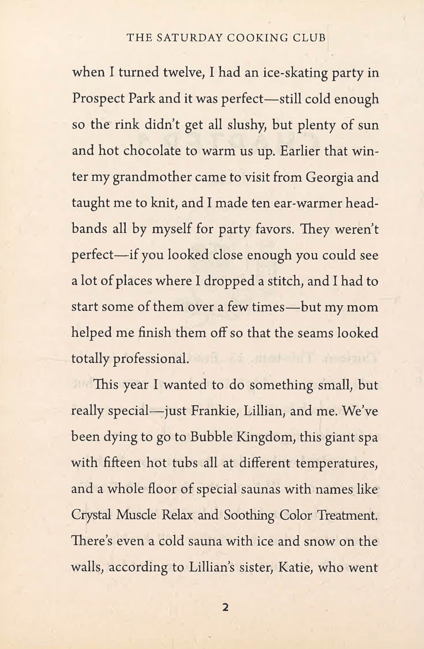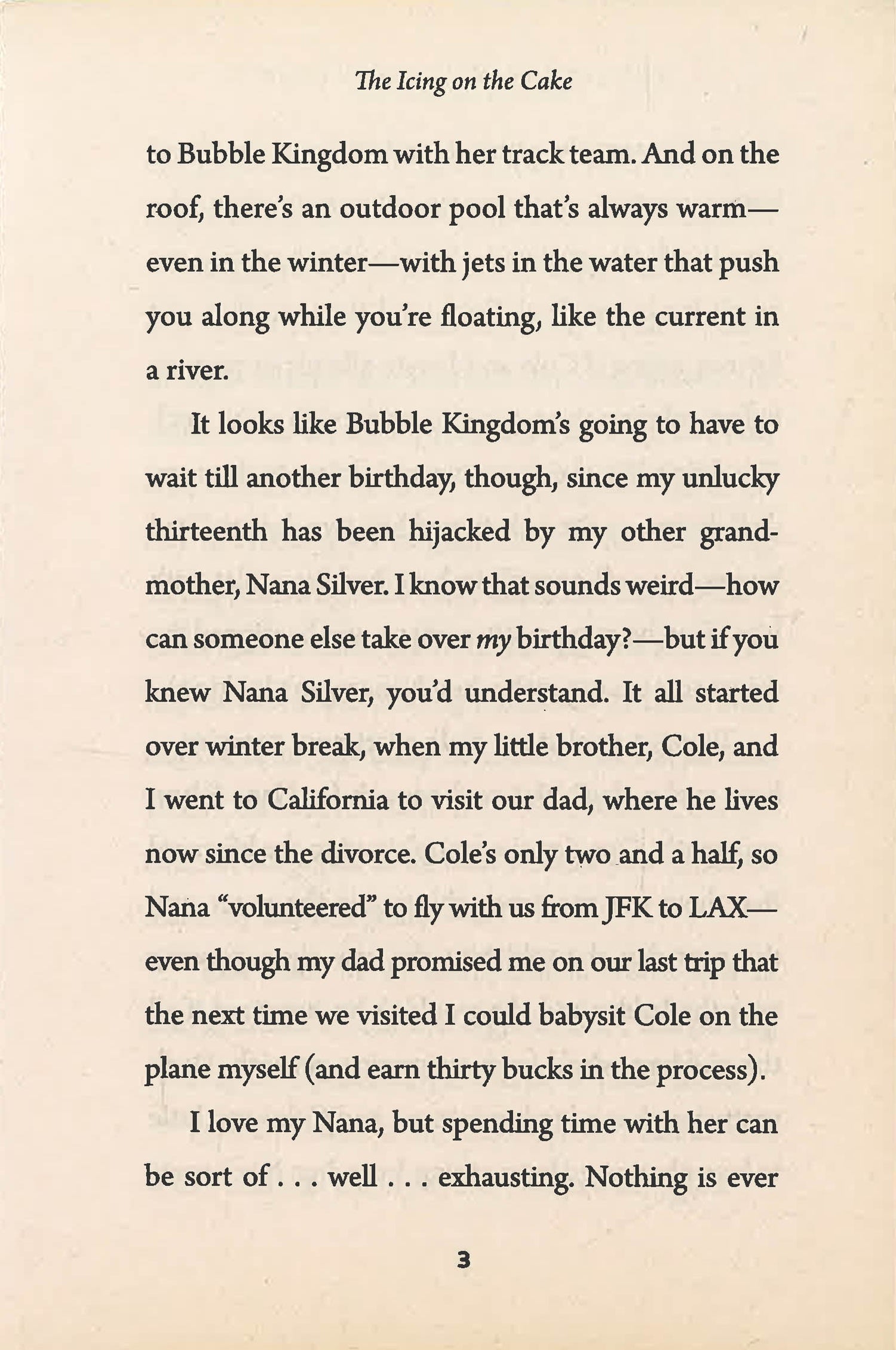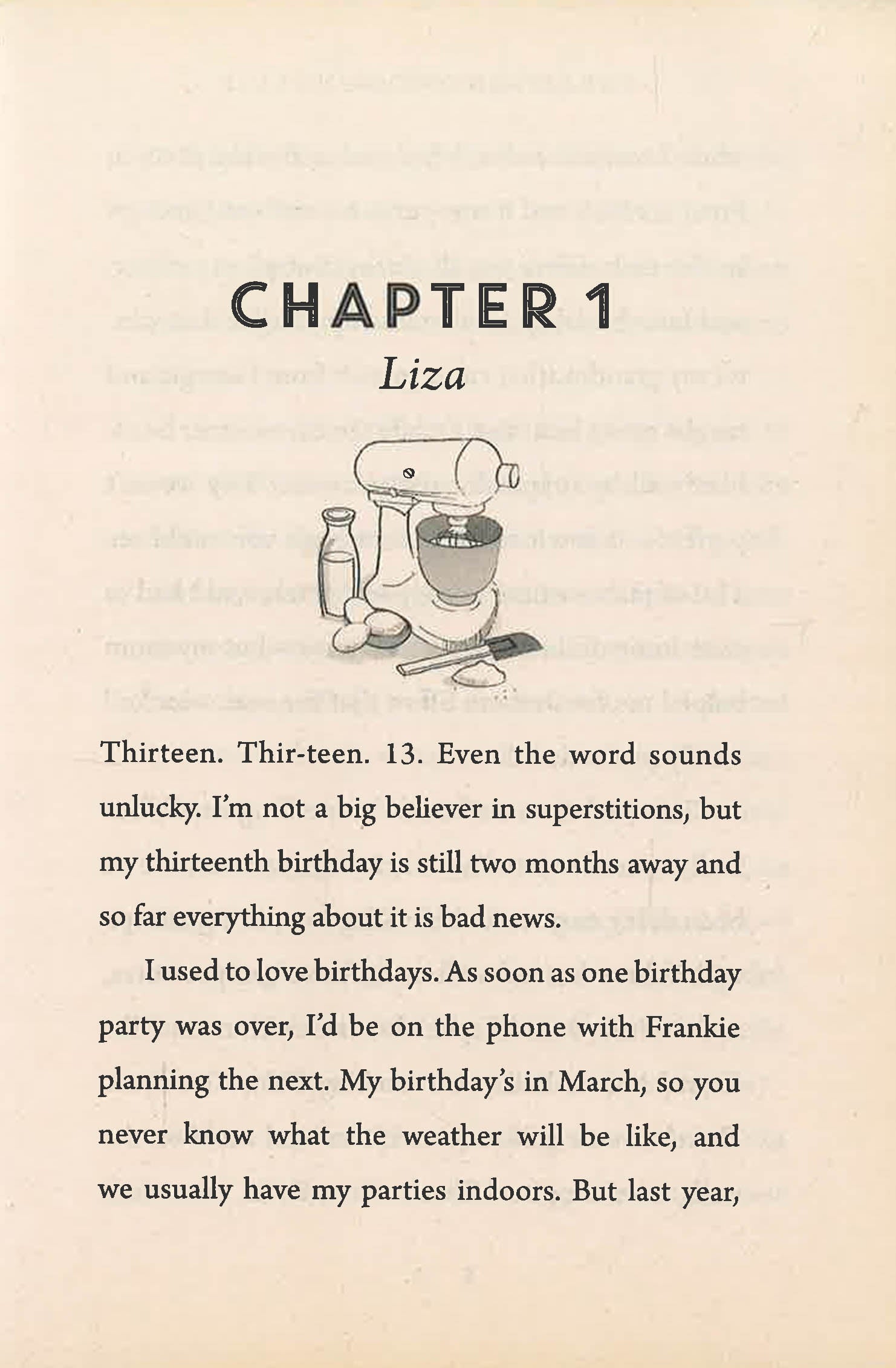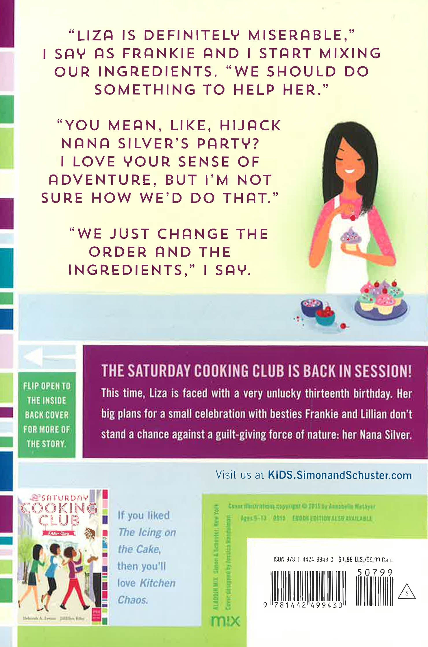 Turning thirteen isn't looking lucky for Liza--and even the kitchen isn't a refuge--in this second book of the Saturday Cooking Club series. Liza's big plans for a small birthday celebration with besties Frankie and Lillian don't stand a chance against a guilt-giving force of nature: her Nana Silver. As the girls attempt to regain control from a grandmother with way-too-grand ideas, they also try to find the right recipes for their own happiness. Frankie decides to remake herself in the image of Lillian's high-achieving, "perfect" sister Katy, while Lillian tackles the puzzle of how to understand boys. And Liza whips up plans to use Nana's extravagant birthday bash to try get her parents back together--despite the obvious simmering between her mom and Chef. Can the girls rise to the occasion and salvage Liza's party without scorched feelings? Or will turning thirteen be far from a piece of cake?