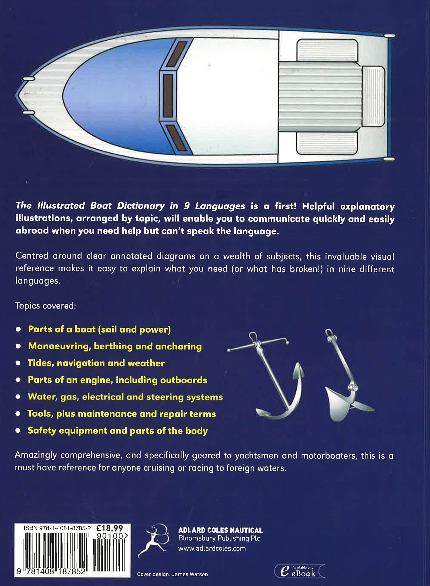 From general terms such as 'port' and 'starboard' to technical words relating to engine and rigging repair and maintenance, The Illustrated Boat Dictionary in 9 Languages is amazingly comprehensive, and even includes supplementary terms for many topics even when they don't feature in the illustrations.